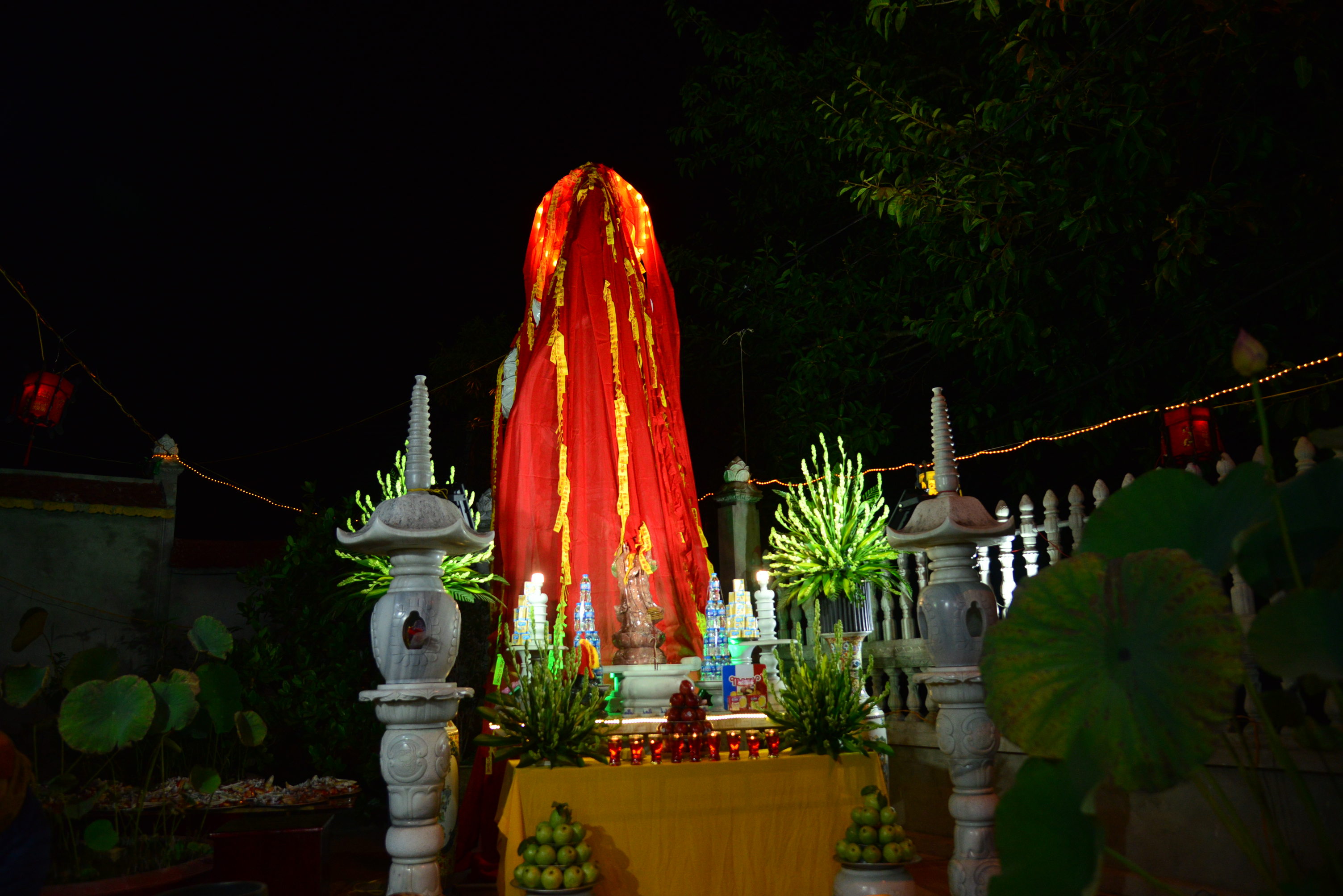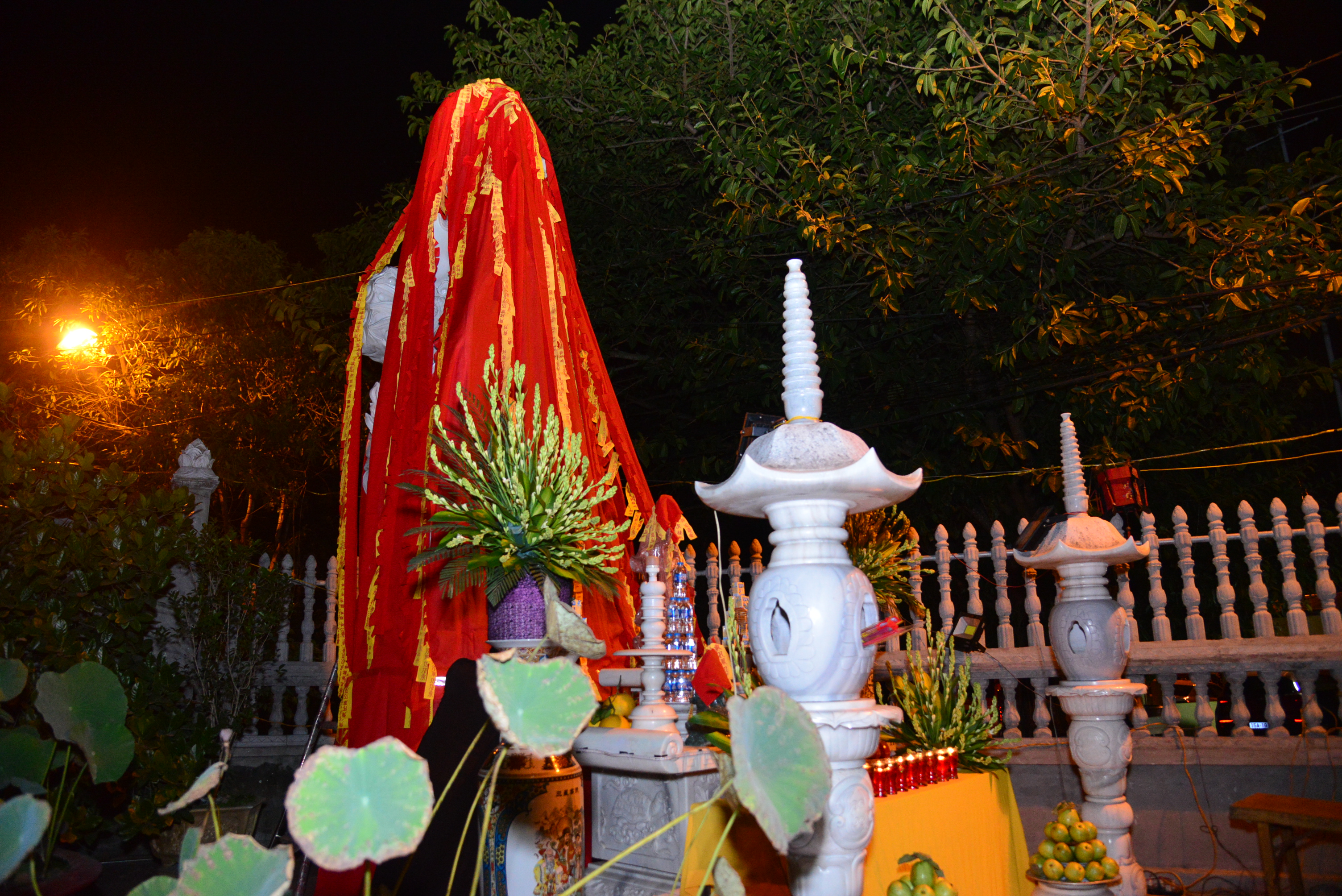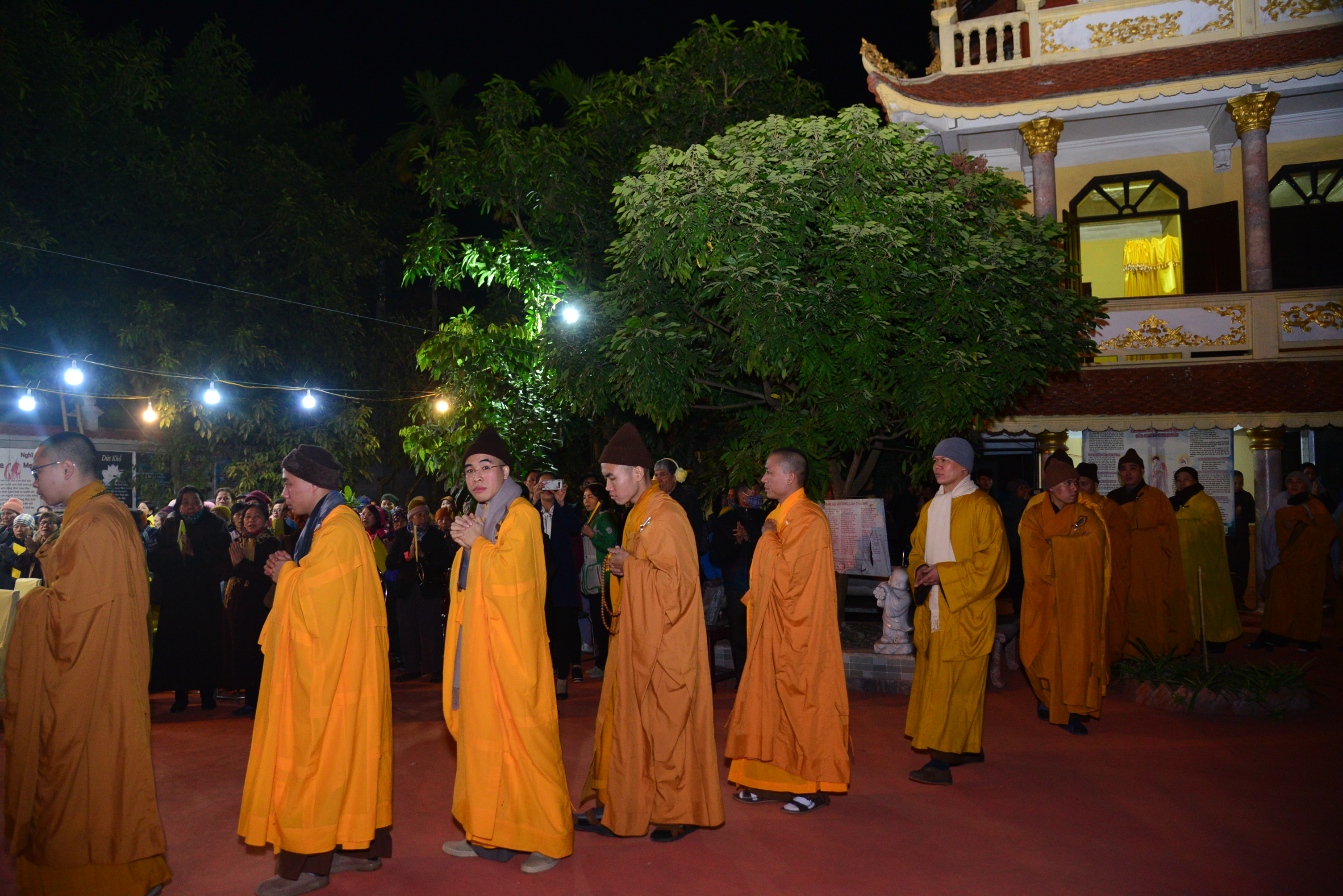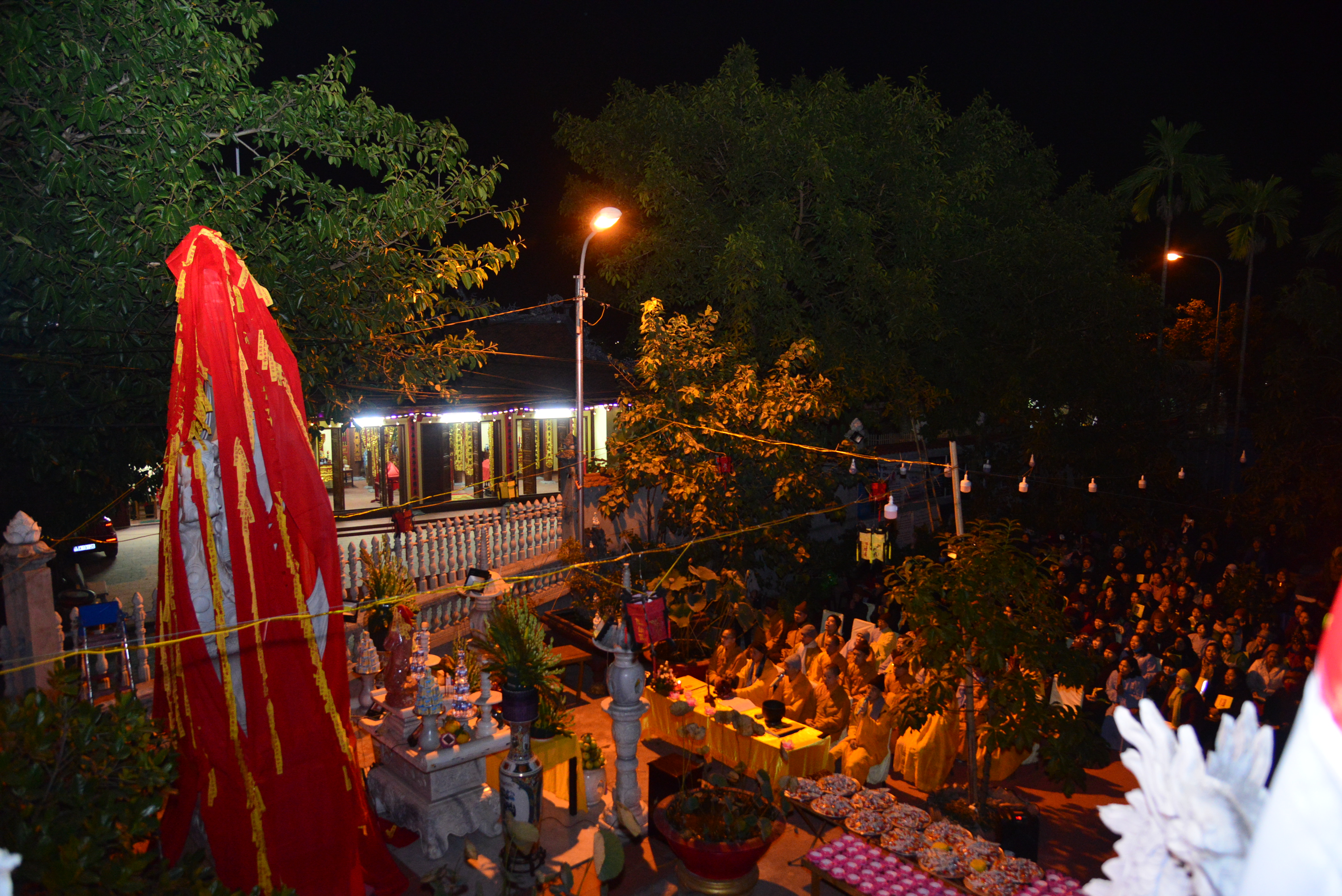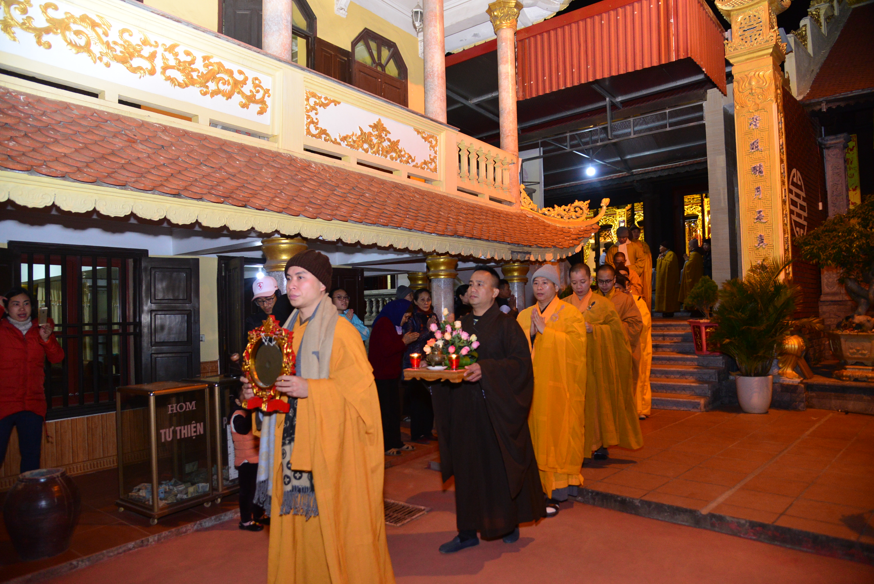 Trong không khí trang nghiêm, thanh tịnh, đối trước thánh tượng của Bồ – tát Quán Thế Âm, chư tôn đức Tăng Ni hiện tiền và quý Phật tử đã cử hành nghi lễ niêm hương, bạch Phật, trì đại bi, thập chú, niệm thánh hiệu Bồ tát – Quán Thế Âm, cầu nguyện thế giới hoà bình, chúng sinh an lạc, Phật pháp trường tồn và lễ khai quang, an vị thánh tượng Bồ tát – Quán Thế Âm.