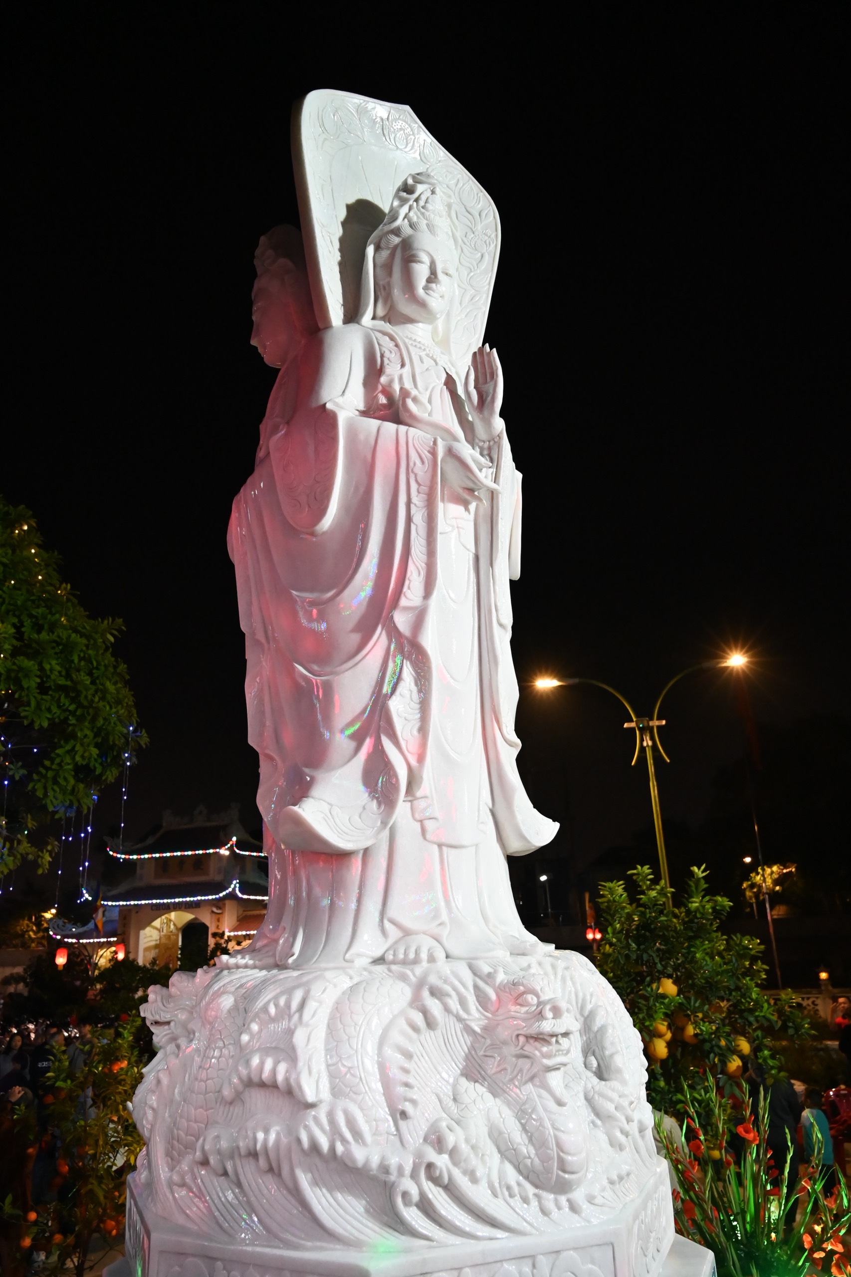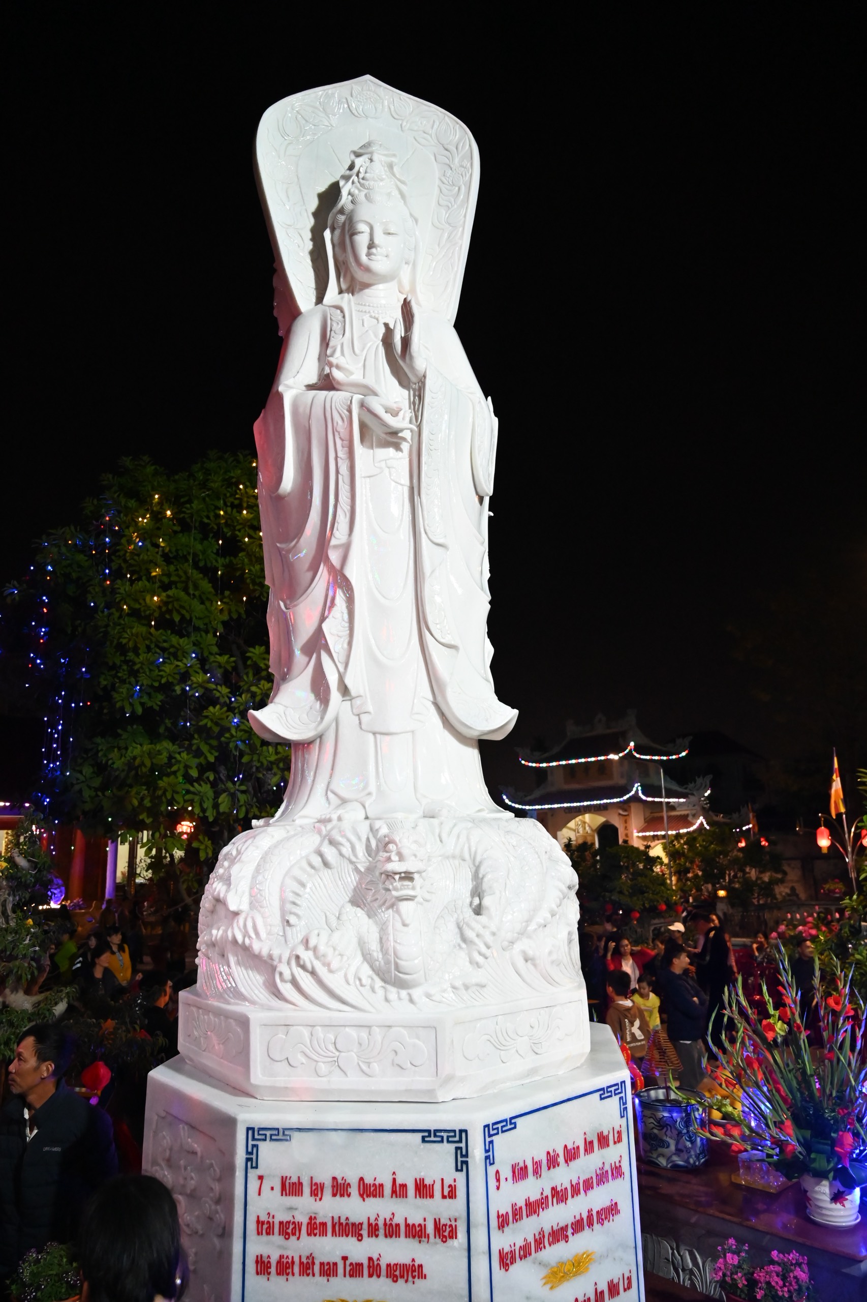 Nhân dịp đầu xuân, Chư tôn đức Ni chùa Ưu Đàm đã cùng các Phật tử tổ chức lễ trì chú, gia trì, an vị tôn tượng Bồ Tát Quán Thế Âm Tam diện lộ thiên. Tôn tượng Bồ Tát Quán Thế Âm được làm bằng chất liệu đá trắng đứng trên lưng rồng có chiều cao 4 mét, nặng 9 tấn, bệ tượng nặng 7 tấn khắc 12 hạnh nguyện của Bồ Tát Quán Thế Âm. Tôn tượng được an vị trước chính điện cùa Ưu Đàm để bà con Phật tử chiêm bái, lễ lạy tăng trưởng hạnh lành, tăng trưởng công đức, nguyện thực hành theo hạnh nguyện của Bồ Tát Quán Thế Âm, biết tha thứ, biết yêu thương, mang tâm từ bi trang trải khắp muôn nơi.