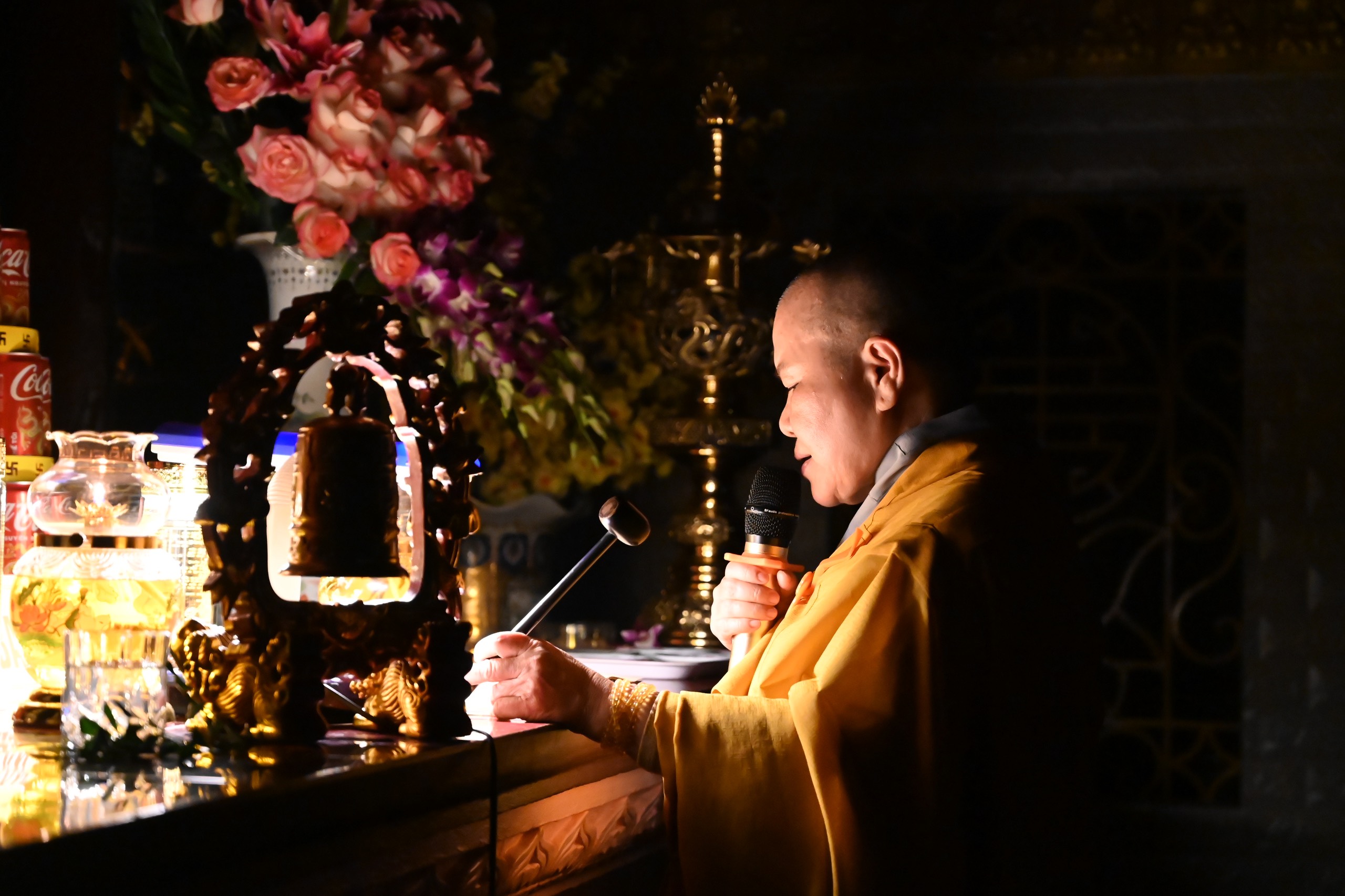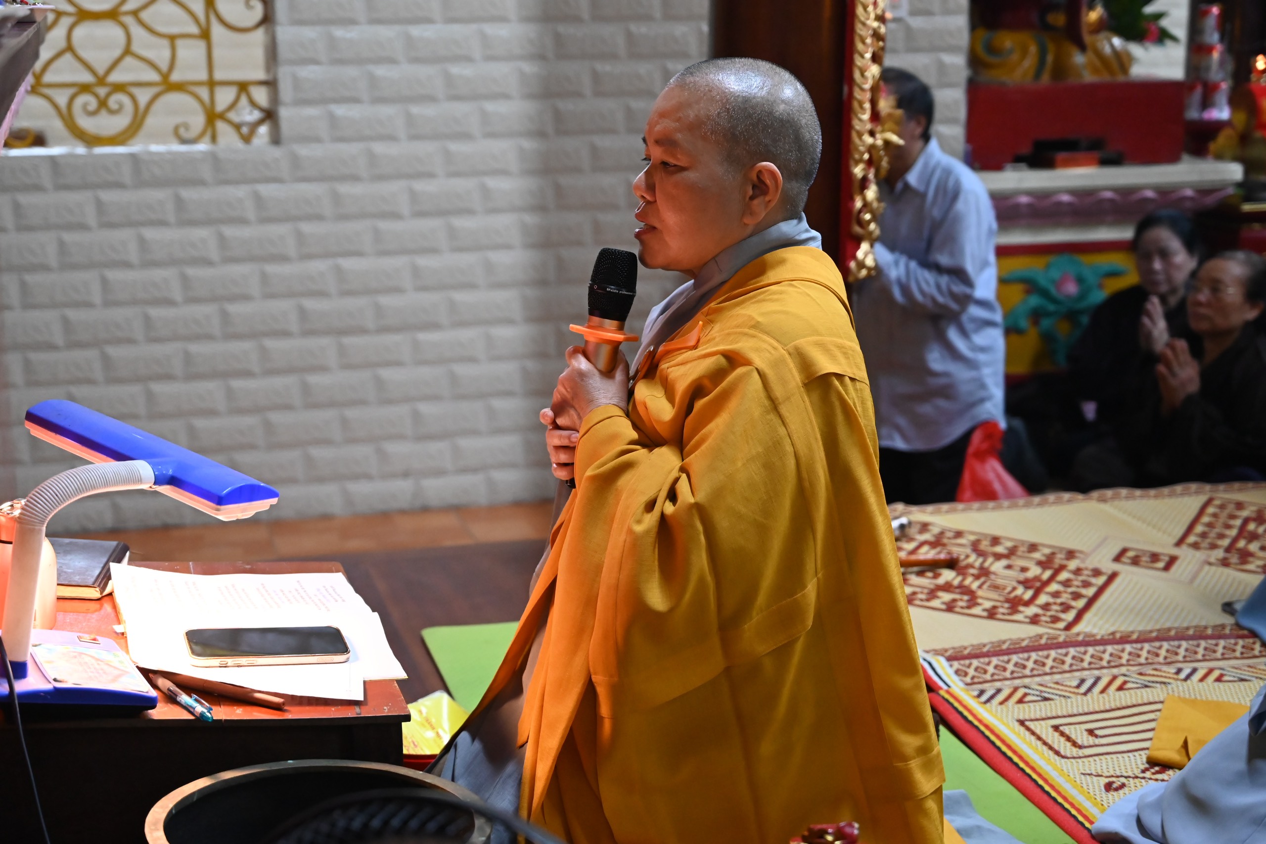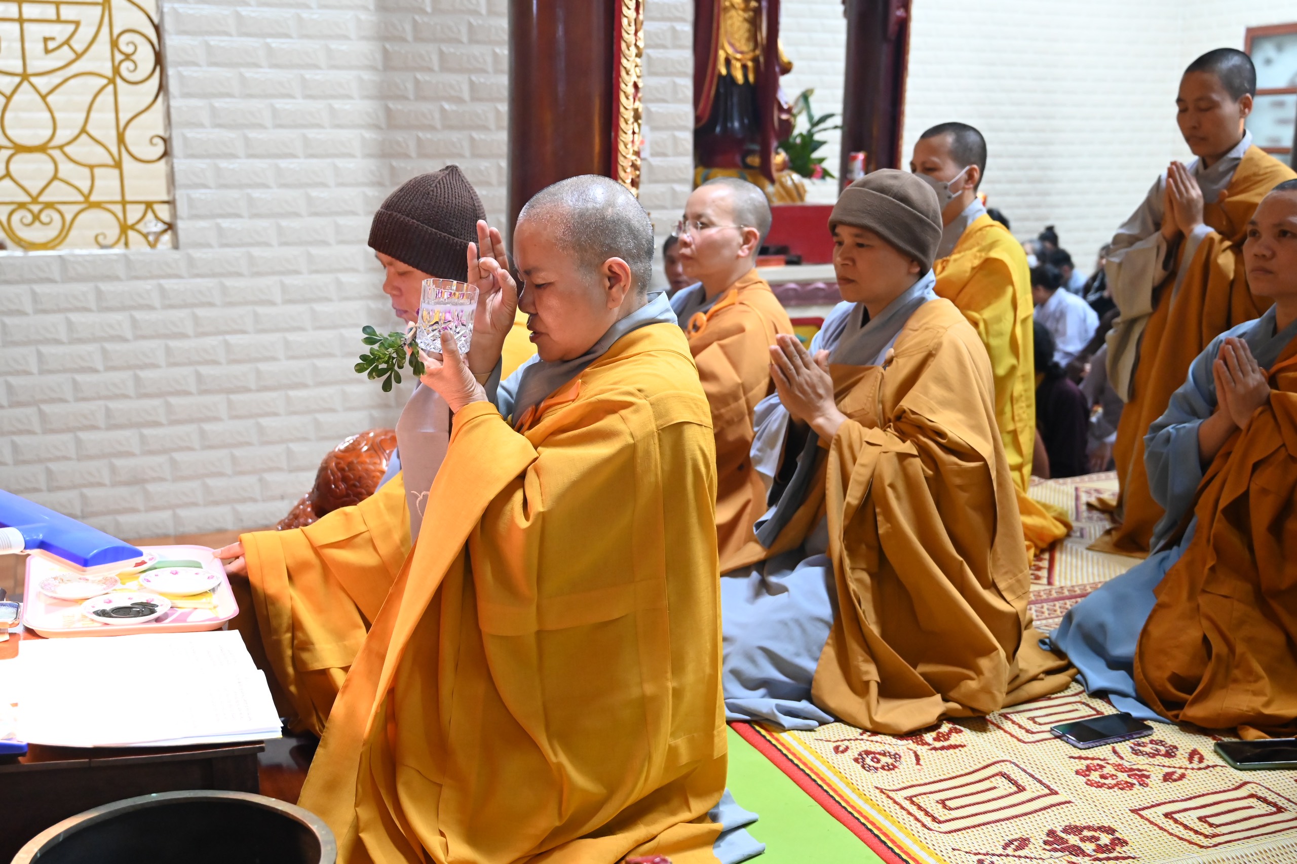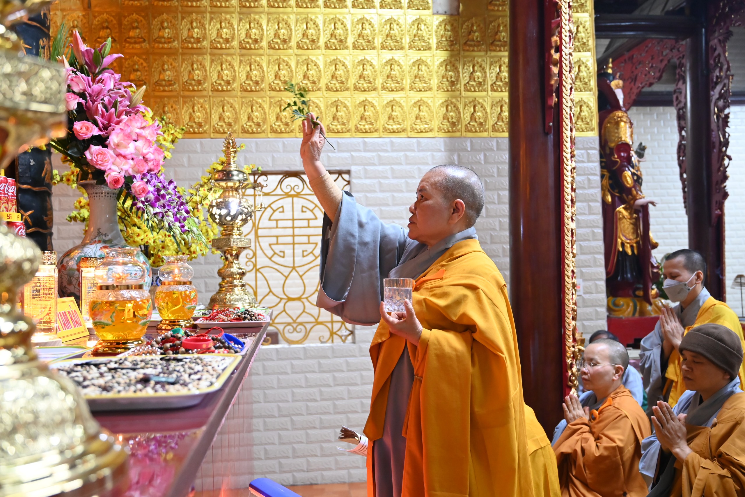 Ni sư Thích Tâm Chính cử hành nghi lễ sái tịnh