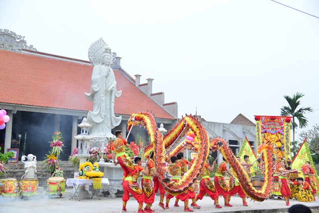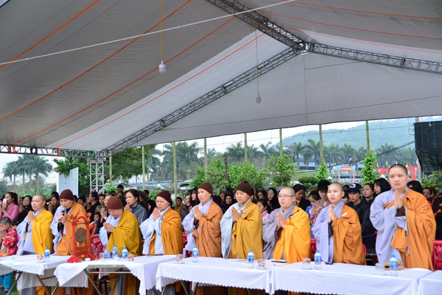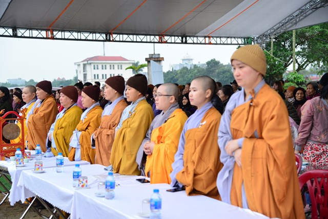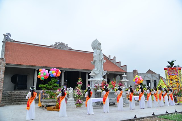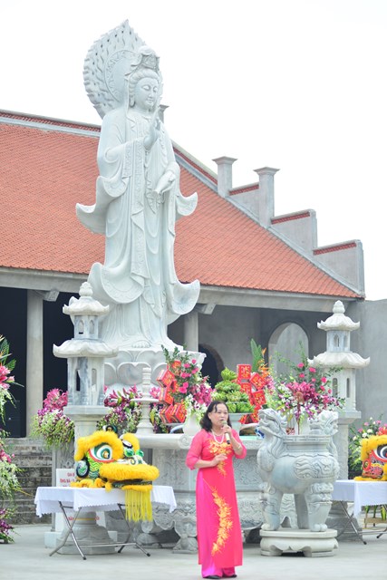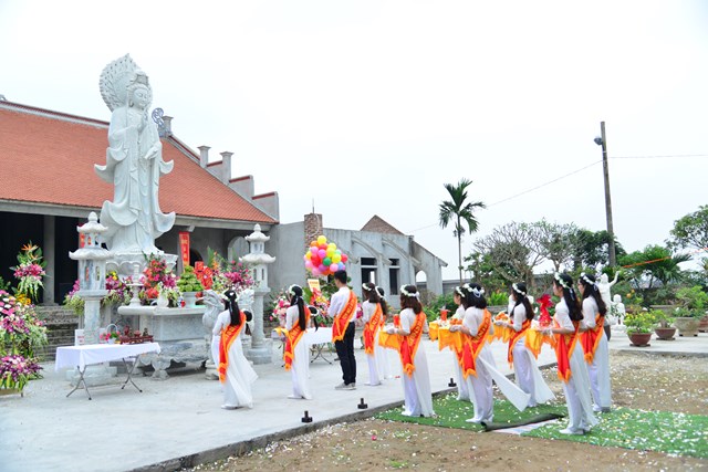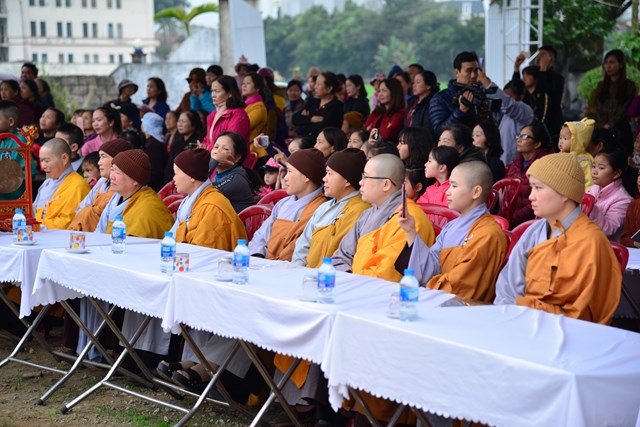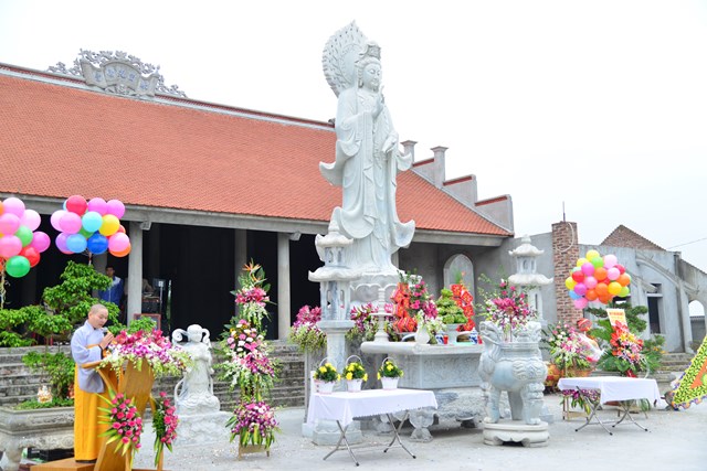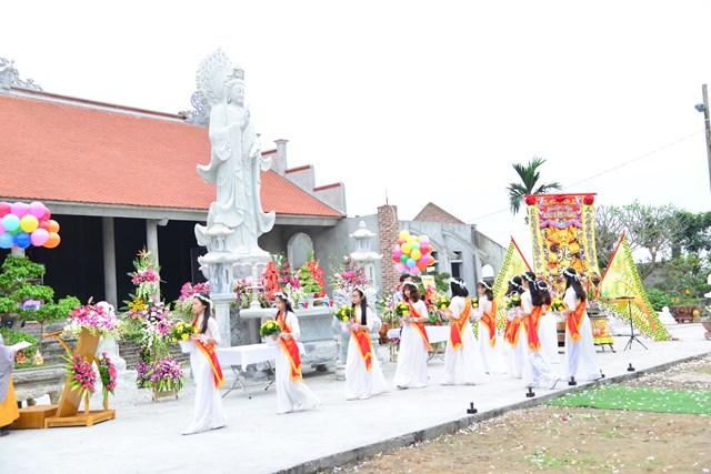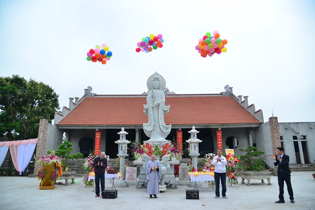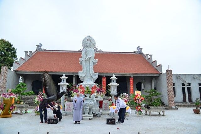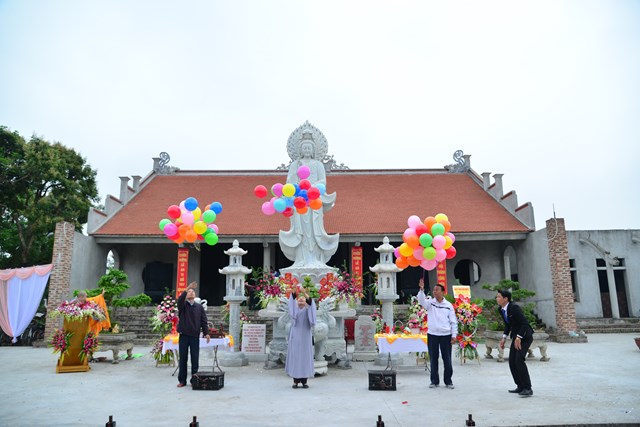 Nhân dịp này, chư tôn đức Tăng Ni, đại biểu chính quyền, quý Phật tử và nhân dân địa phương đã làm lễ niêm hương bạch Phật, thả bóng bay và thả chim bồ câu cầu nguyện Bồ Tát Quán Thế Âm gia hộ cho thế giới hòa bình, chúng sinh an lạc, Phât pháp được trường tồn.