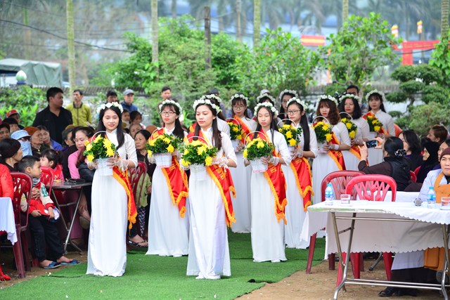 Các em thanh thiếu niên dâng hoa cúng dàng