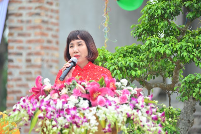 Bà: Hoàng Thị Ngọc Lan – Phó chủ tịch UBND phường Phù Liễn tặng hoa chúc mừng
