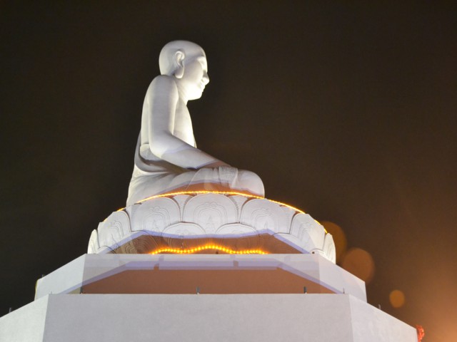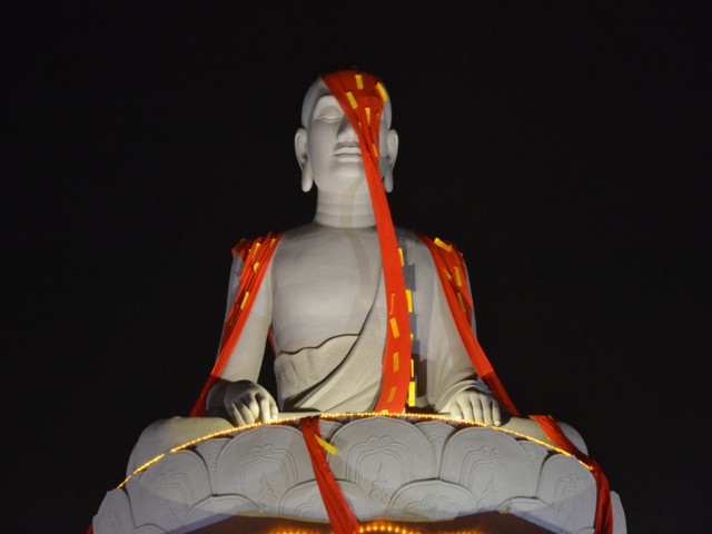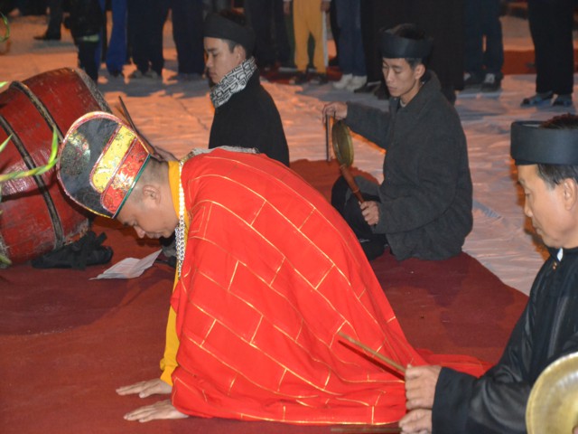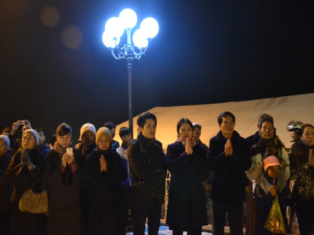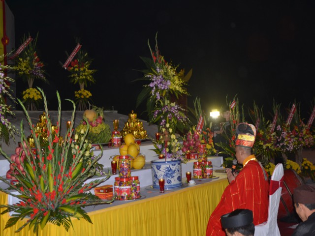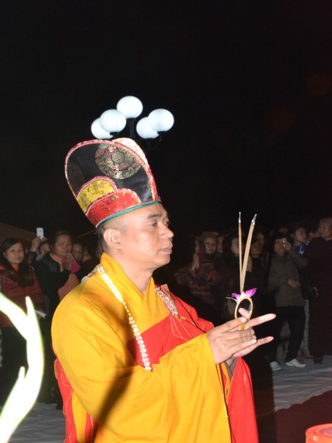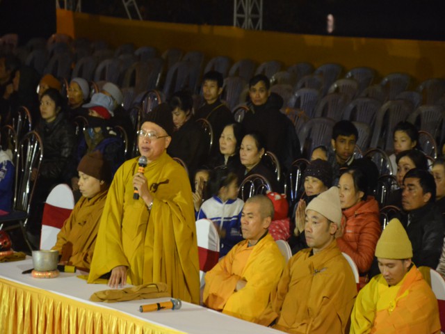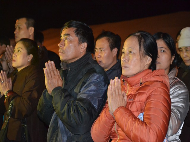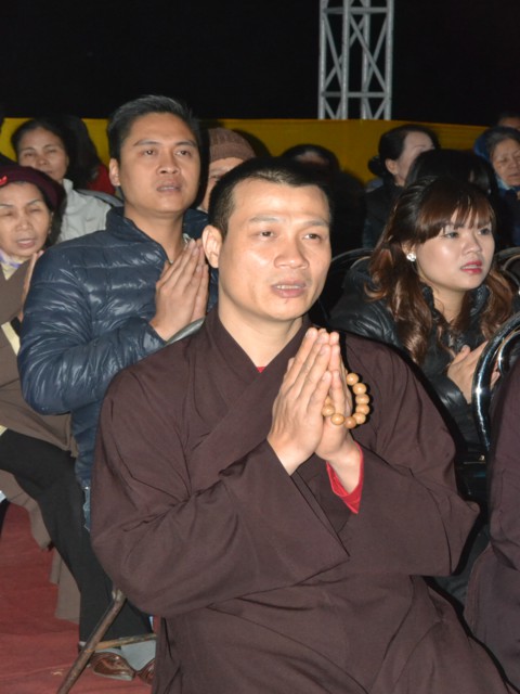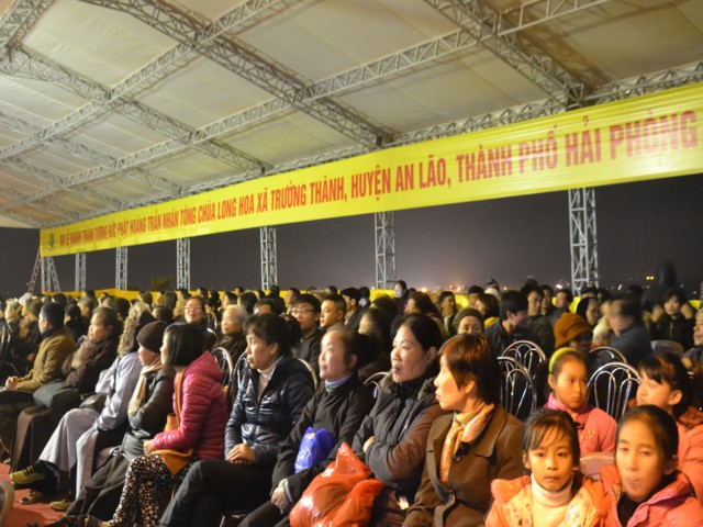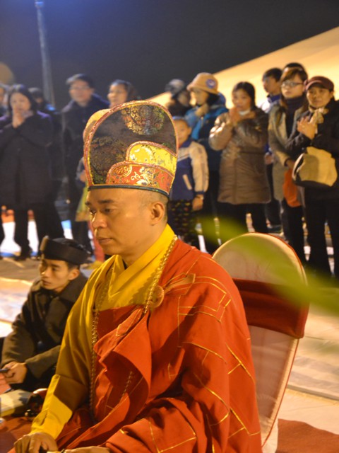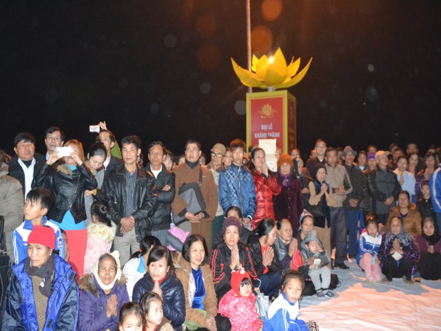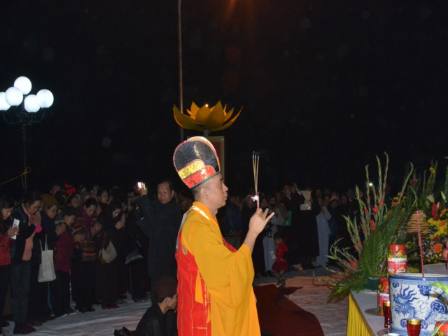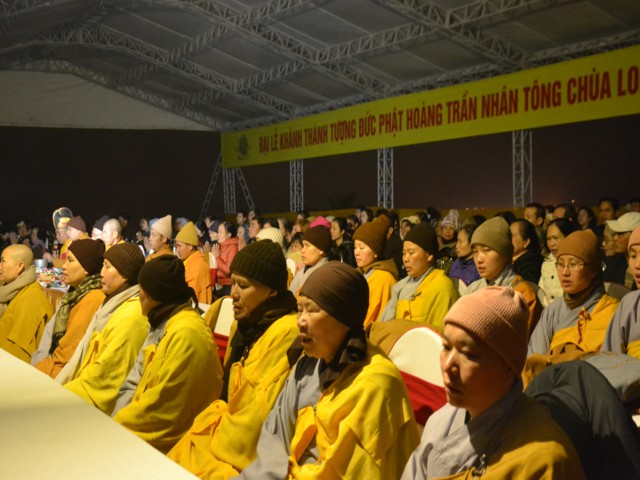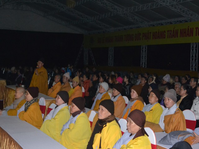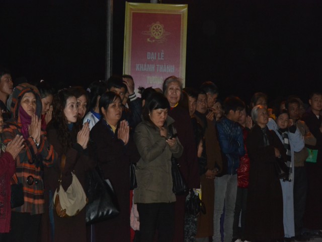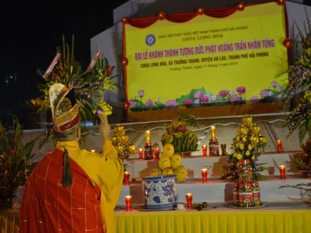 Đúng 19 giờ, Chư tôn đức Tăng ni, chính quyền địa phương và bà con Phật tử đã cử hành nghi lễ dâng hương, bạch Phật, an vị tượng Phật Hoàng Trần Nhân Tông, cầu nguyện cho thế giới hòa bình, Quốc thái, dân an, vạn dân an lạc.