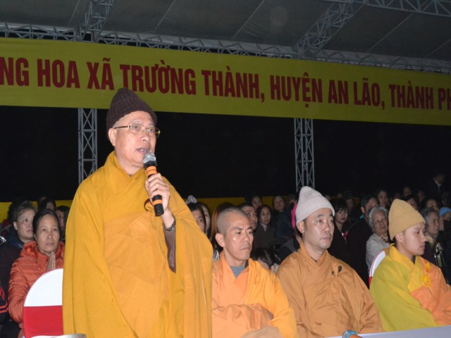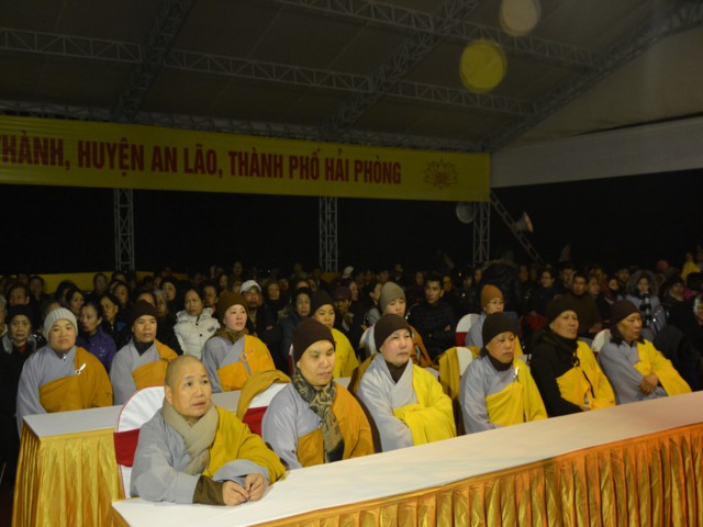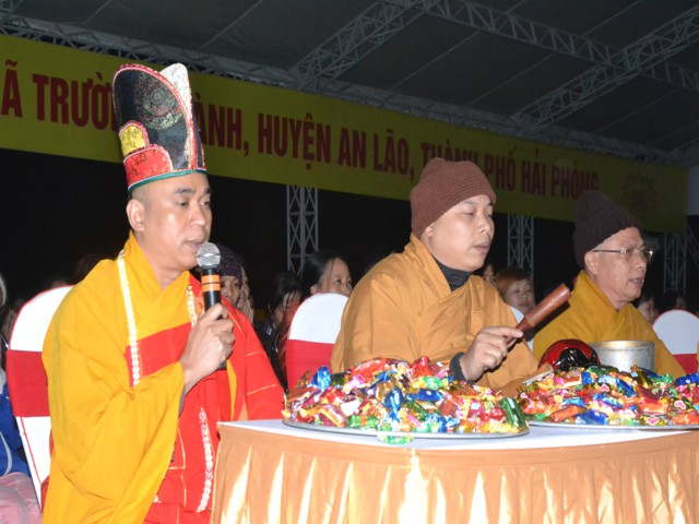 Quang lâm và chứng minh buổi lễ có TT. Thích Thanh Giác, Phó ban Hoằng pháp TW GHPGVN, Phó trưởng Ban trị sự GHPGVN Tp. Hải Phòng, trụ trì chùa Long Hoa, xã Trường Thành, huyện An Lão, Hải Phòng; ĐĐ. Thích Thanh Hiển – Chánh thư ký BTS GHPGVN Tp. Hải Phòng, Chư tôn đức Tăng Ni Ban trị sự GHPGVN Tp. Hải Phòng cùng các cấp chính quyền địa phương, đông đảo bà con Phật tử và nhân dân địa phương.