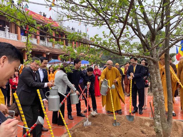 Chư tôn đức và chính quyền trồng cây lưu niệm
