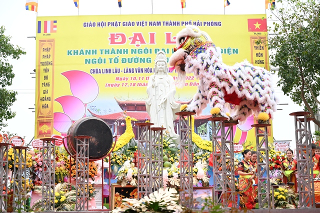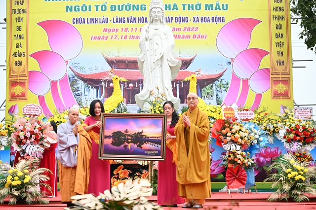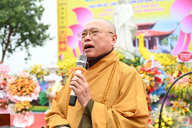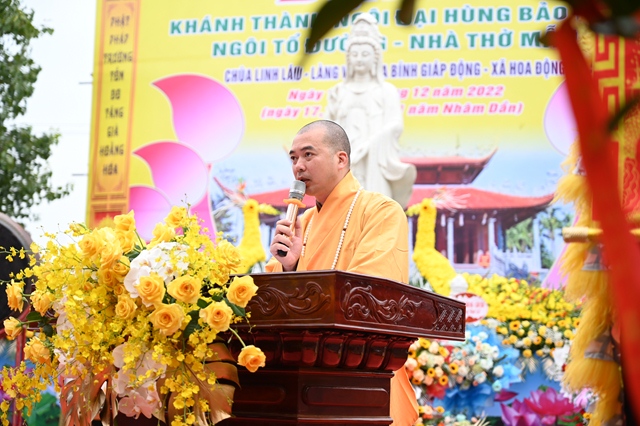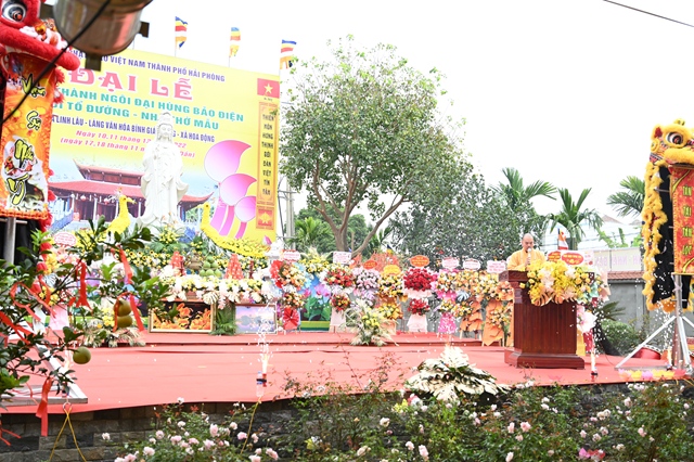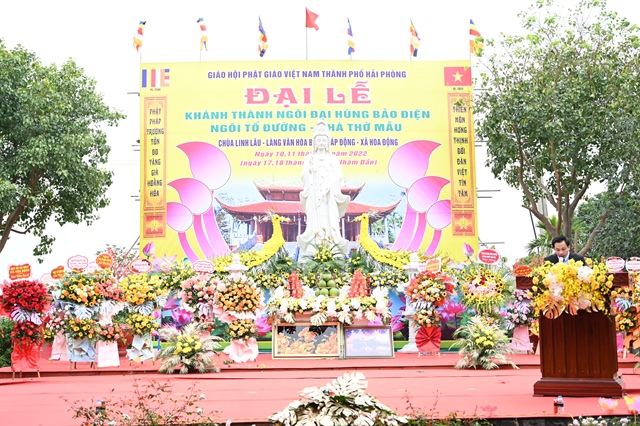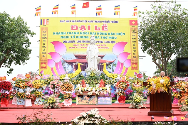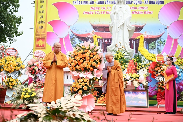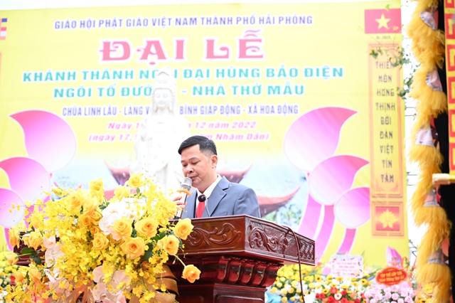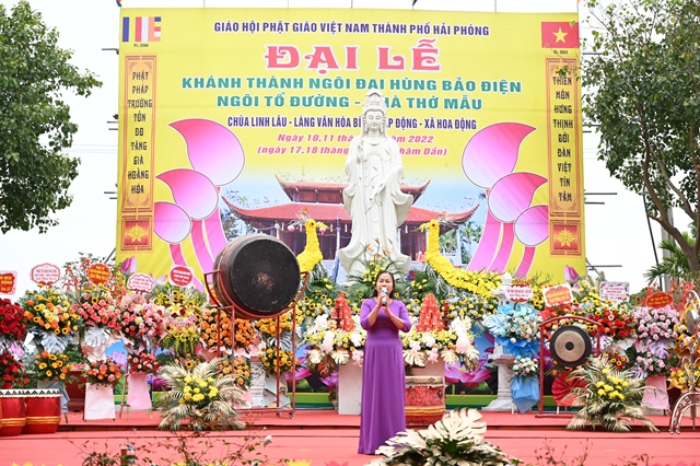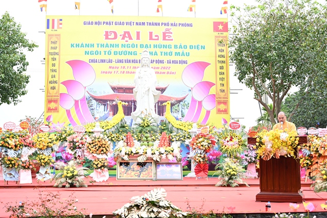 Ban đạo từ tại buổi lễ, Hòa thượng Thích Thanh Giác – Phó trưởng ban thường trực Ban trị sự GHPGVN thành phố Hải Phòng đã ôn lại lịch sử ngôi chùa Linh Lâu, tán dương công đức của Ni sư trụ trì, các cấp lãnh đạo chính quyền, cùng Phật tử, nhân dân địa phương, các doanh nghiệp, các nhà hảo tâm, các mạnh thường quân đã đóng bè, tập phúc xây dựng lại ngôi Đại Hùng Bảo Điện chùa Linh Lâu. Hòa thượng mong rằng, trong thời gian tới, Ni sư trụ trì sẽ tiếp tục phát huy thế mạnh của mình, phục vụ cho Giáo hội, hướng dẫn bà con Phật tử, nhân dân địa phương tu học, phối hợp cùng các cấp chính quyền địa phương tuyên truyền đường lối chính sách của Đảng, Nhà nước, góp phần vào việc đảm bảo an sinh xã hội tại địa phương, đưa huyện nhà ngày càng phát triển. Đồng thời, Hòa thượng cũng mong muốn trong thời gian tới, các cấp lãnh đạo chính quyền trong huyện tạo mọi điền kiện cho Ni sư trụ trì tổ chức các hoạt động Phật sự, giúp bà con Phật tử tu học, tích đức, hành thiện.