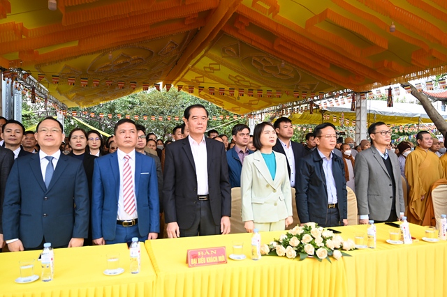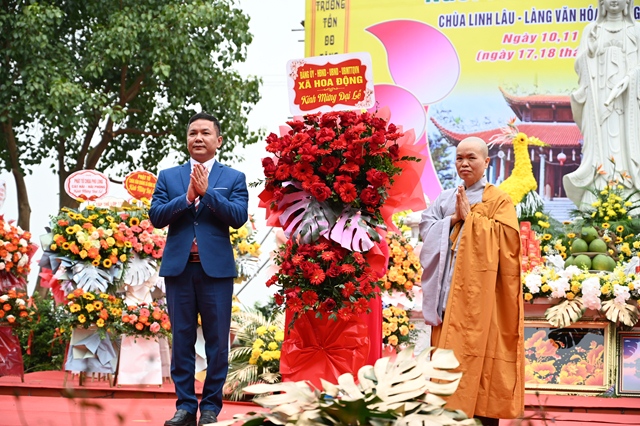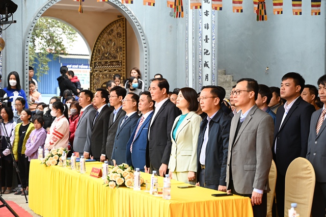Về phía khách mời chính quyền có sự hiện diện của ông: Dương Ngọc Anh – Trưởng Ban Tôn giáo, Sở Nội vụ thành phố Hải Phòng; Bà: Lương Thị Thập – Ủy viên Ban thường vụ Huyện ủy, trưởng Ban Dân vận huyện ủy, huyện Thủy Nguyên; ông: Uông Minh Long – Phó Chủ tịch UBND huyện Thủy Nguyên; ông: Hoàng Quốc Thái – Viện trưởng Viện kiểm sát nhân dân huyện Thủy Nguyên; ông: Bùi Văn Hậu – Chủ tịch UB MTTQVN huyện Thủy Nguyên; ông; Hoàng Thanh Tuấn – Trưởng phòng Nội vụ huyện; ông: Trịnh Quang Định – Chánh Thanh tra huyện cùng các ông bà lãnh đạo chính quyền đại diện cho HĐND, UBND, UB MTTQVN xã Hoa Động, làng văn hóa Bính Động, đông đảo quý Phật tử gần xa, du khách thập phương và nhân dân địa phương.