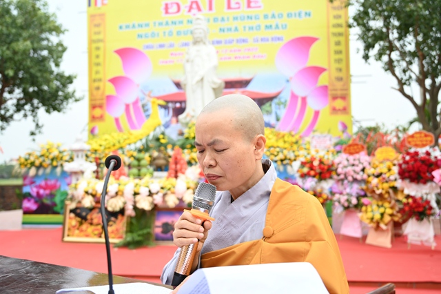 Ni sư Thích Tịnh Hoan – Trụ trì chùa Linh Lâu báo cáo tổng kết quá trình kiến thiết và kinh phí xây dựng