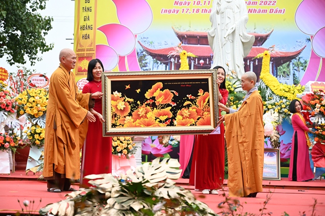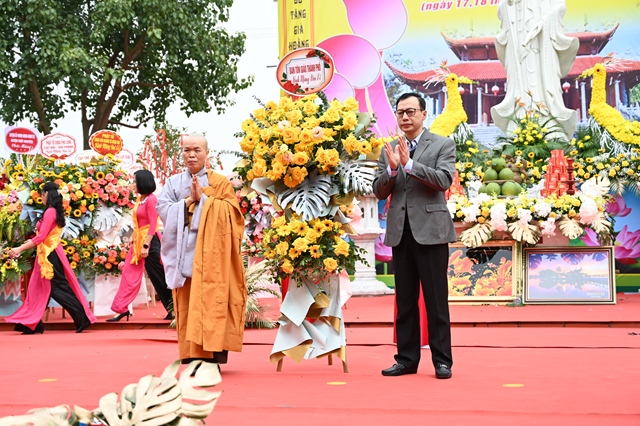 Dịp này, Ni sư trụ trì cũng đã đón nhận lẵng hoa chúc mừng, quà từ Hội đồng chứng minh GHPGVN; Ban trị sự GHPGVN thành phố Hải Phòng, thường trực BTS GHPGVN thành phố, BTS GHPGVN huyện Thủy Nguyên, Ban Tôn giáo thành phố, lãnh đạo chính quyền huyện, cùng các sở ban ngành trong và ngoài huyện Thủy Nguyên.