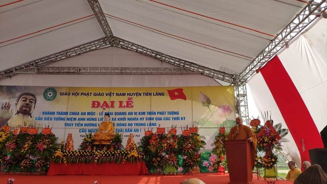 Vừa qua, ngày 28/12/2019 ( nhằm ngày 3 tháng chạp năm Kỷ Hợi), tại Chùa An Mộc, xã Khởi Nghĩa, huyện Tiên Lãng, thành phố. Hải Phòng đã long trọng diễn ra Đại lễ khánh thành ngôi Đại hùng Bảo Điện, an vị kim thân Phật tượng tại chính điện và lễ cầu siêu hương linh các anh hùng liệt sĩ đã hy sinh qua các thời kỳ, truy tiến Chư hương linh quá cố trong thôn và nguyện cầu Quốc thái, dân an .