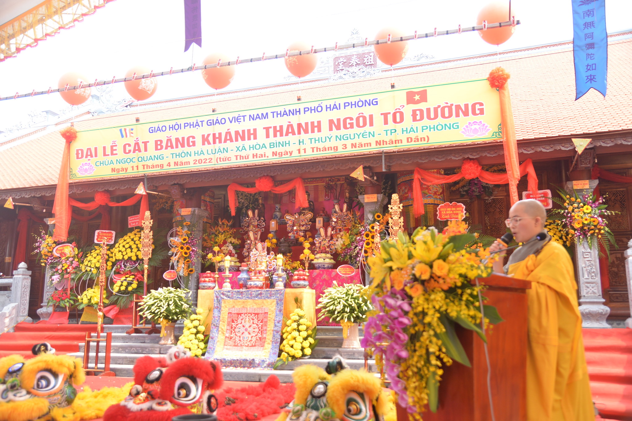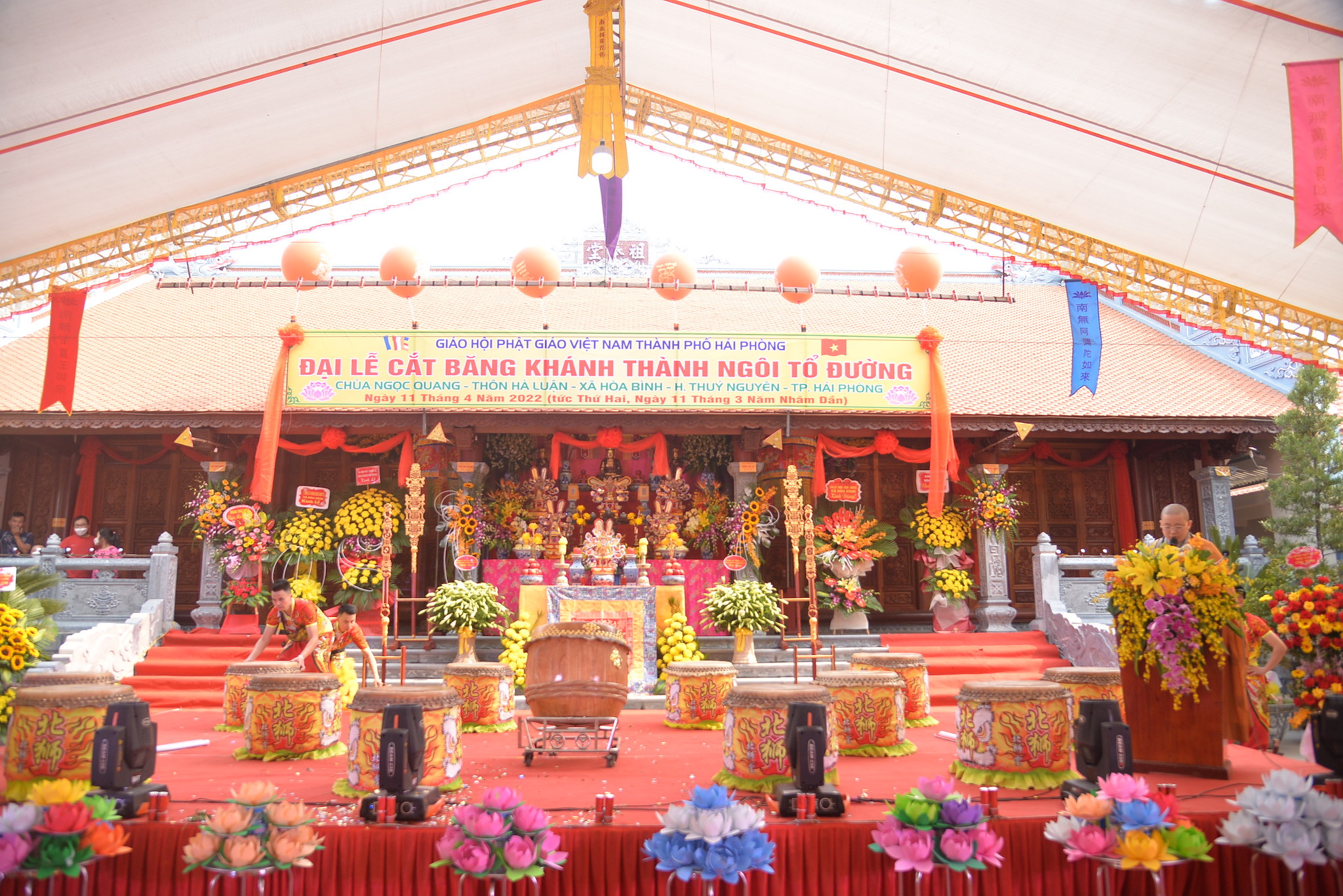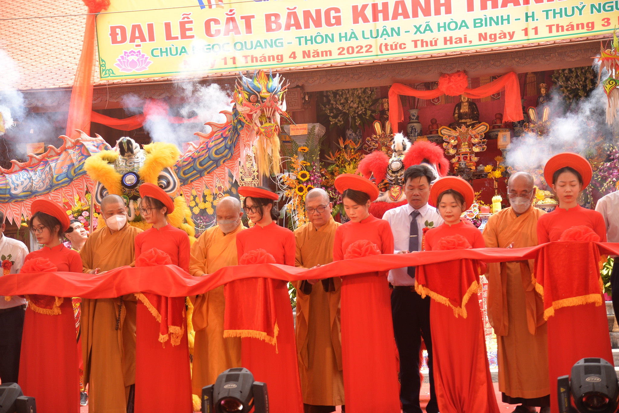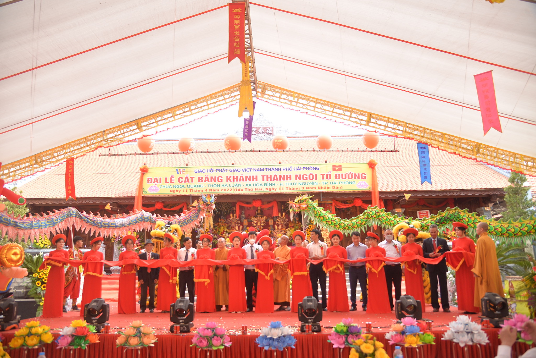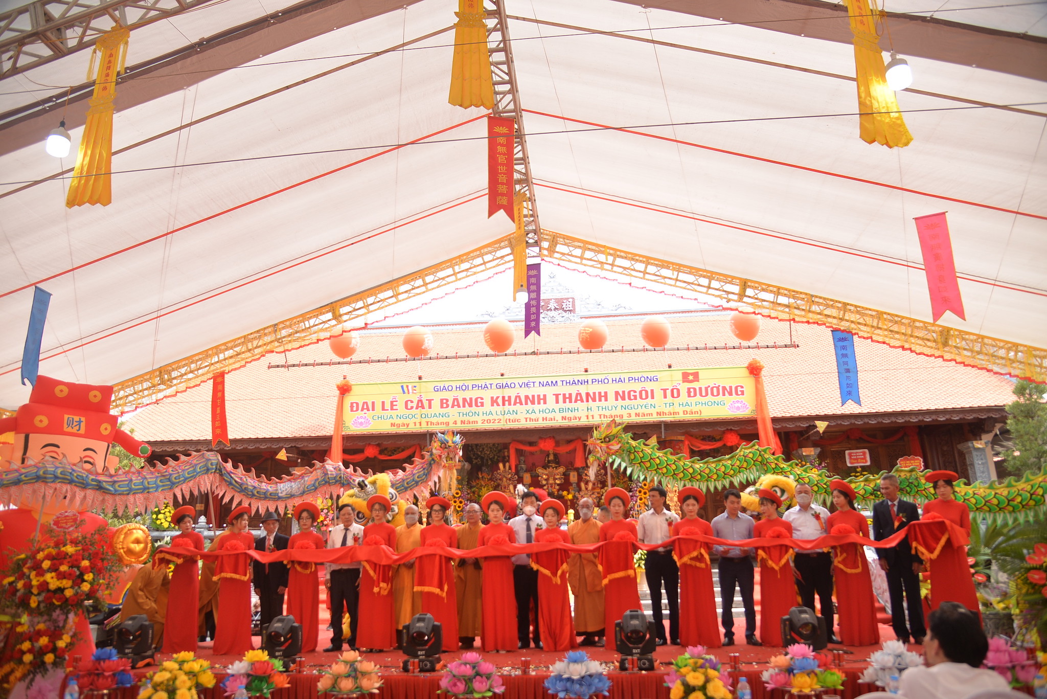 Sáng nay ngày 11/04/2022 (nhằm ngày 11/03 năm Nhâm Dần), tại thôn Hà Luận, xã Hòa Bình, huyện Thủy Nguyên, thành phố Hải Phòng đã long trọng diễn ra Đại lễ cắt băng khánh thành ngôi Tổ Đường chùa Ngọc Quang (chùa Hà Luận) với sự tham dự của đông đảo chư tôn đức Tăng Ni, cùng đồng bào Phật tử và nhân dân địa phương.