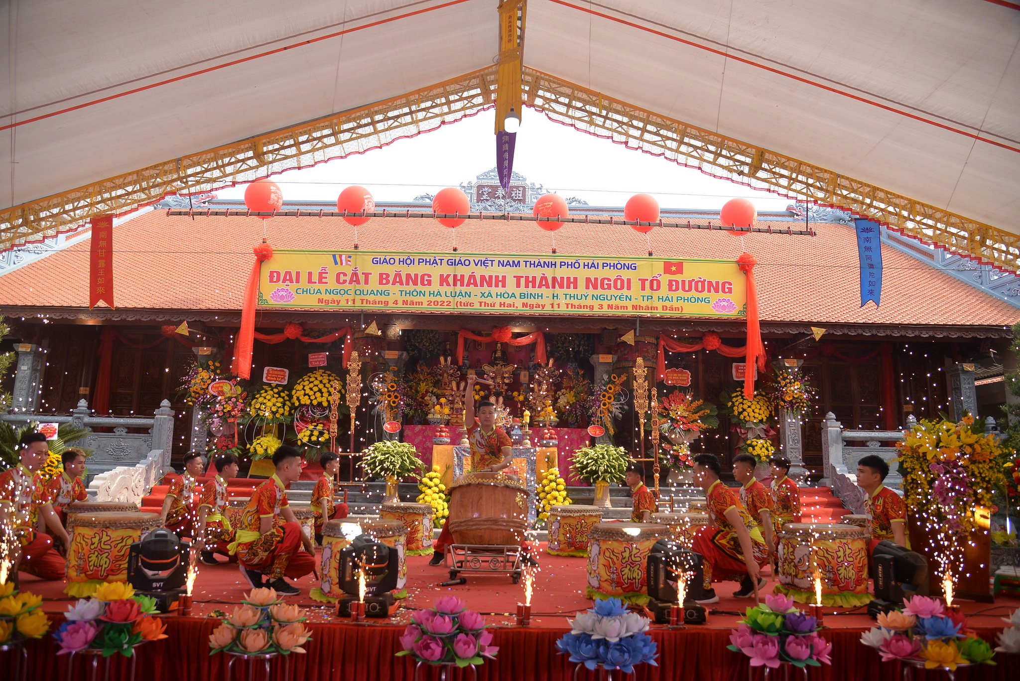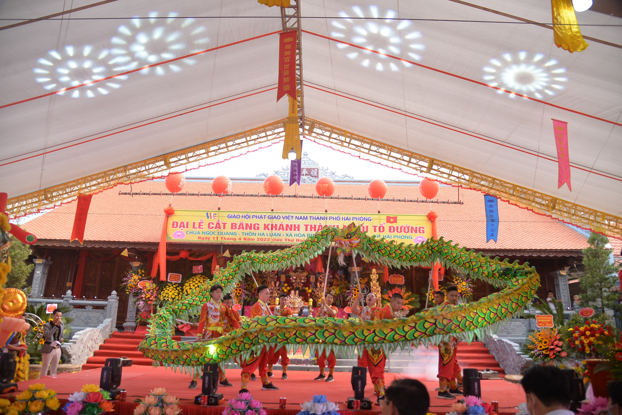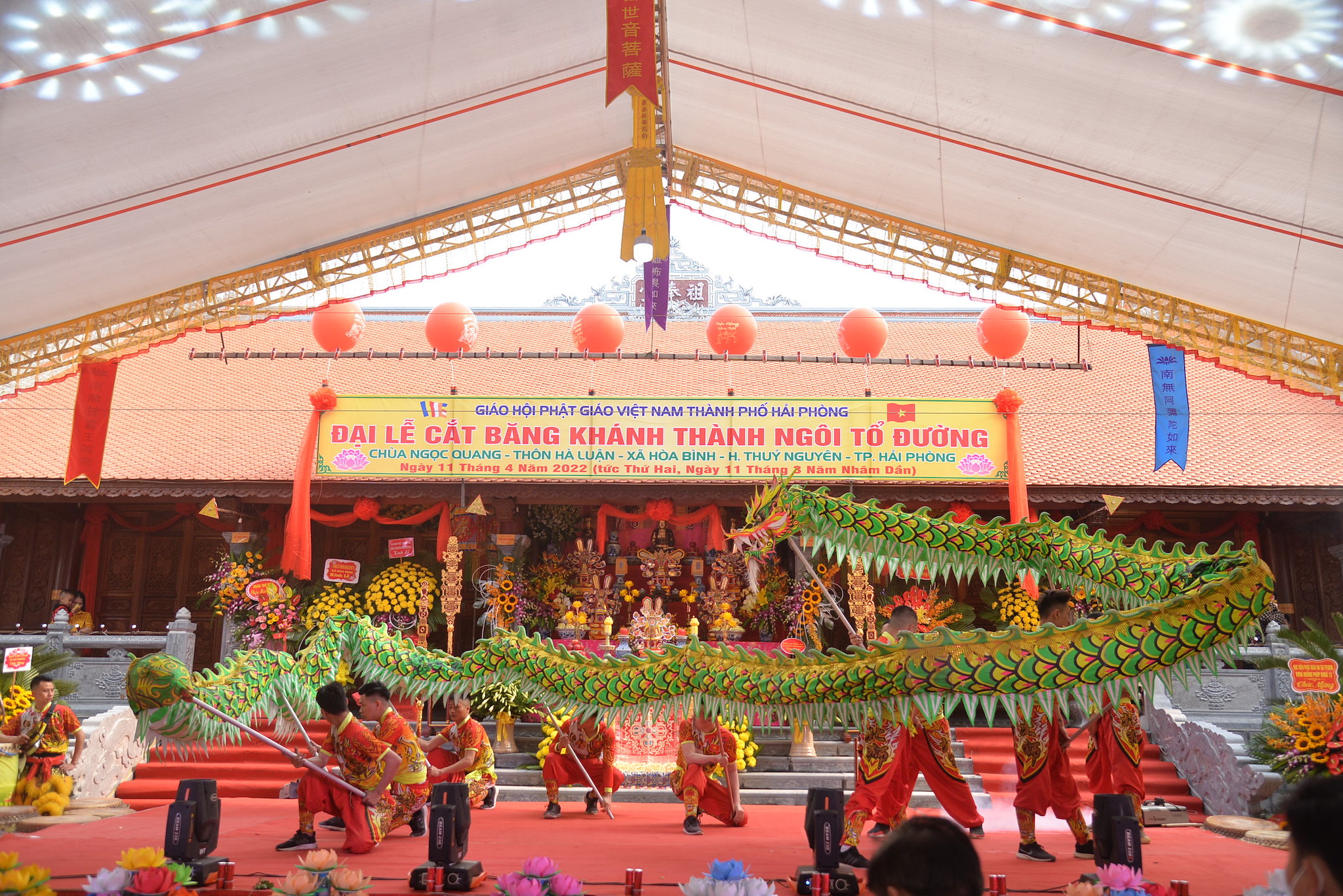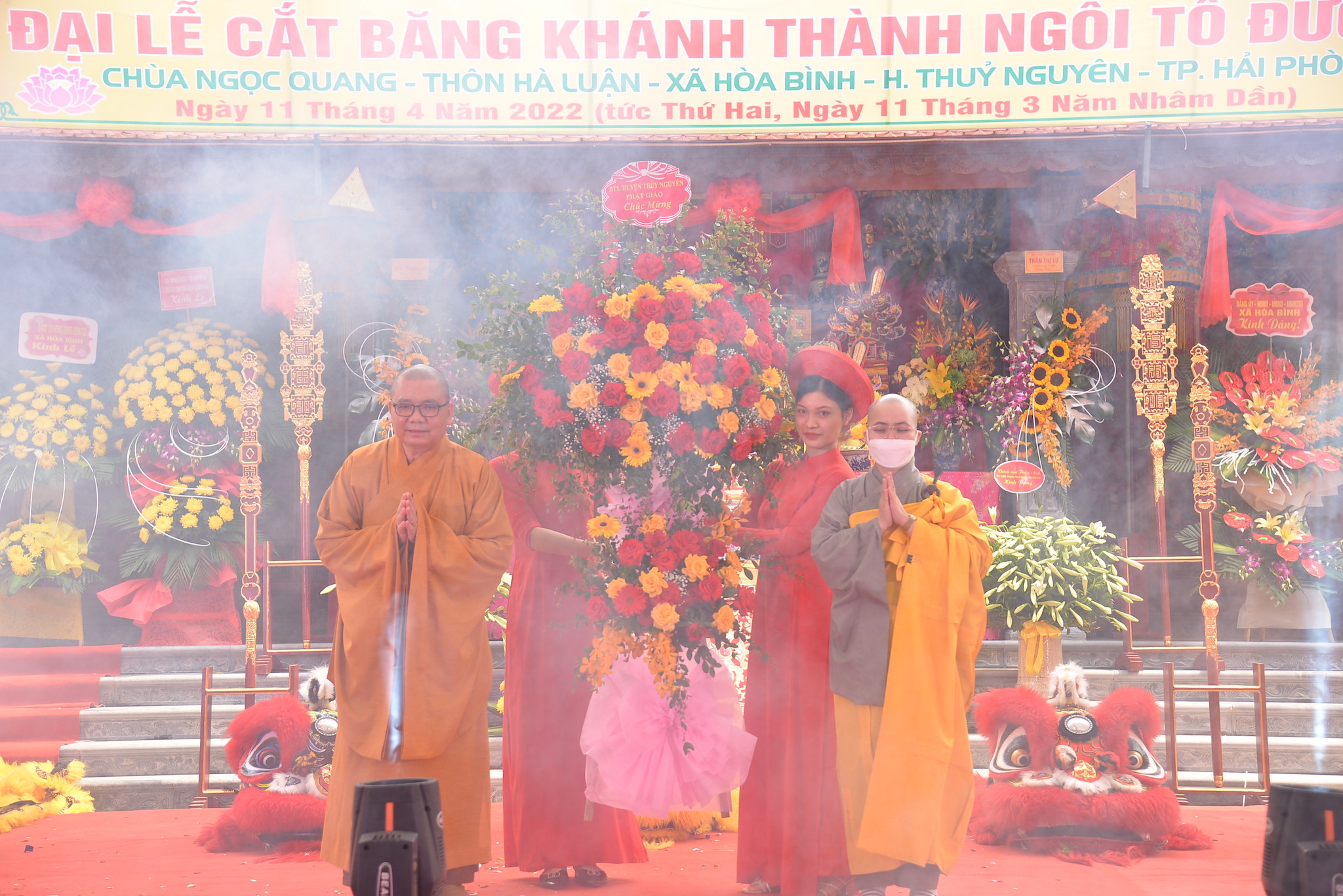 Sáng nay ngày 11/04/2022 (nhằm ngày 11/03 năm Nhâm Dần), tại thôn Hà Luận, xã Hòa Bình, huyện Thủy Nguyên, thành phố Hải Phòng đã long trọng diễn ra Đại lễ cắt băng khánh thành ngôi Tổ Đường chùa Ngọc Quang (chùa Hà Luận) với sự tham dự của đông đảo chư tôn đức Tăng Ni, cùng đồng bào Phật tử và nhân dân địa phương.