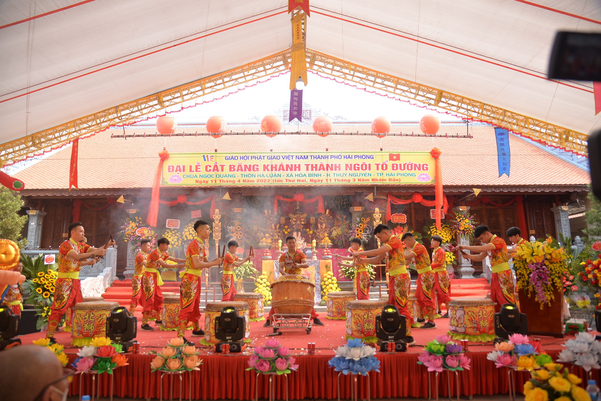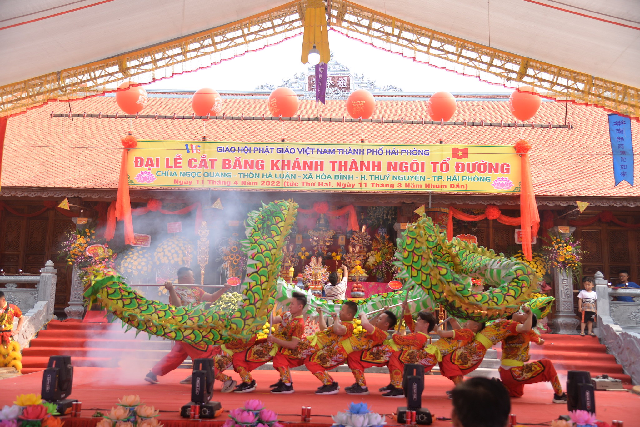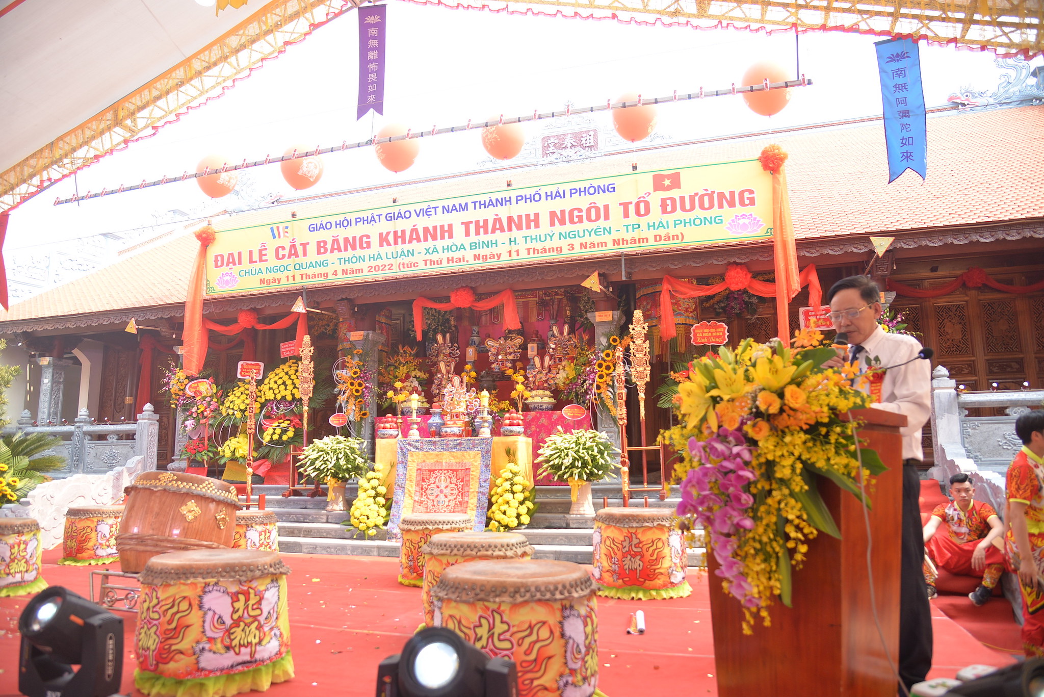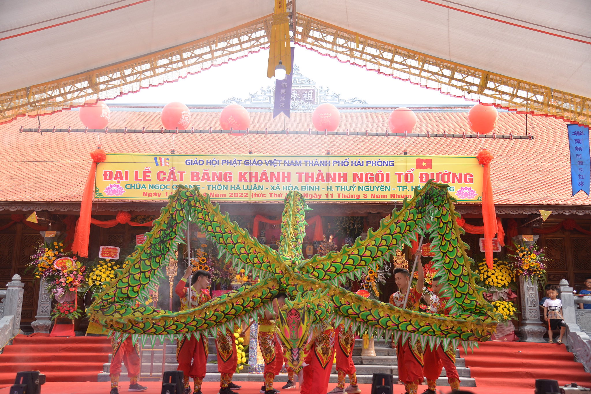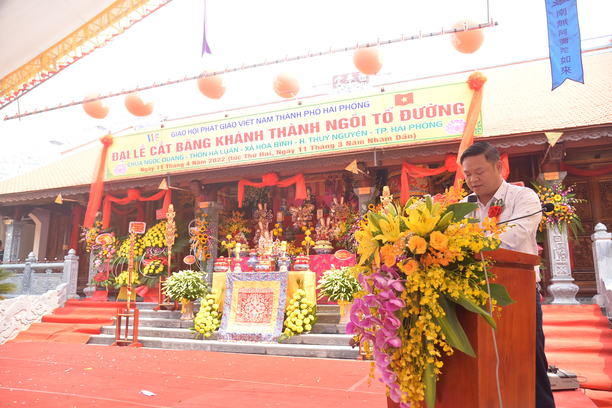 Sáng nay ngày 11/04/2022 (nhằm ngày 11/03 năm Nhâm Dần), tại thôn Hà Luận, xã Hòa Bình, huyện Thủy Nguyên, thành phố Hải Phòng đã long trọng diễn ra Đại lễ cắt băng khánh thành ngôi Tổ Đường chùa Ngọc Quang (chùa Hà Luận) với sự tham dự của đông đảo chư tôn đức Tăng Ni, cùng đồng bào Phật tử và nhân dân địa phương.