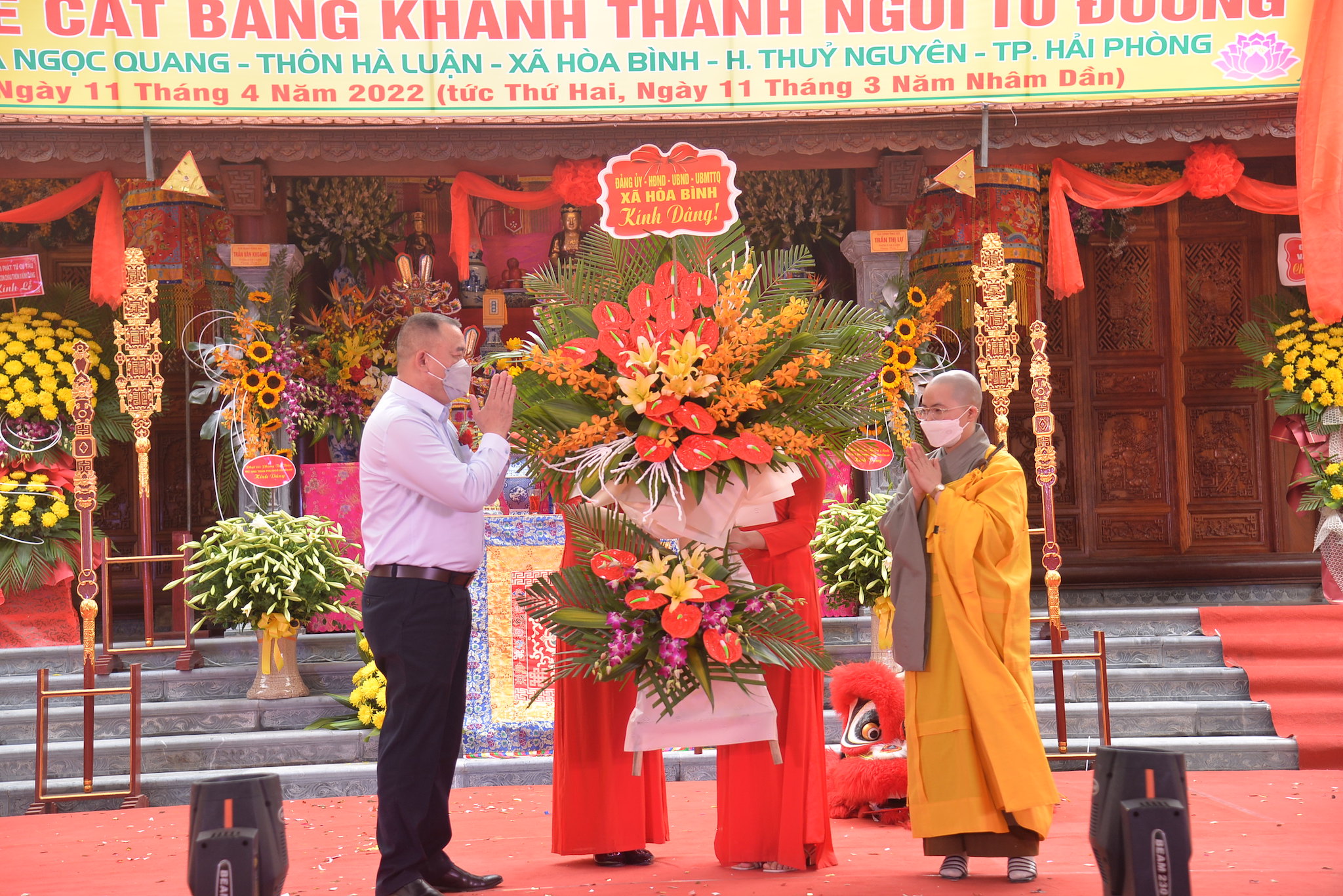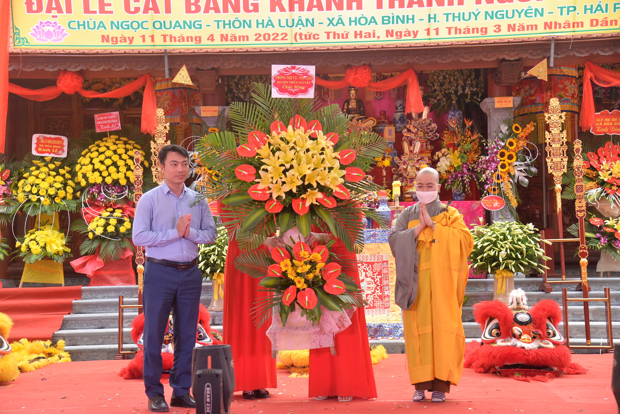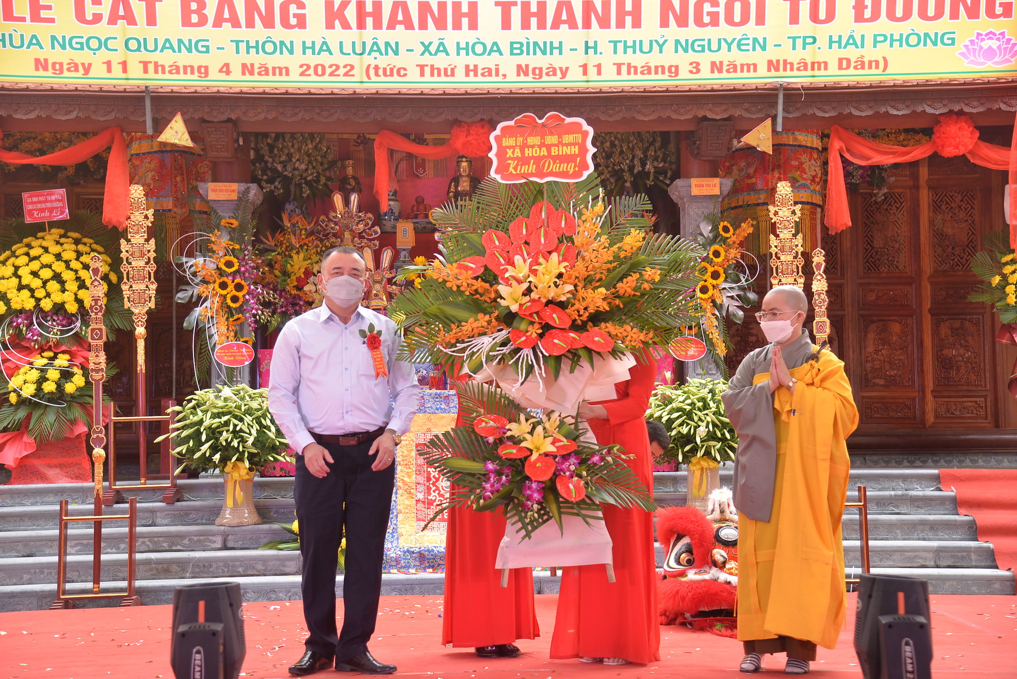 Về phía khách mời chính quyền có ông: Đỗ Văn Thi – Phó trưởng phòng Nội vụ huyện Thủy Nguyên; ông: Vương Văn Năm – Bí thư Đảng uỷ, chủ tịch HĐND xã Hòa Bình; ông: Nguyễn Duy Tuyên: Phó Bí thư, Chủ tịch UBND xã; ông: Trần Văn Toàn – Đảng ủy viên, Phó Chủ tịch UBND xã Hòa Bình, trưởng Ban quản lý Di tích; ông: Trần Văn Hân – Trưởng Làng văn hóa thôn Hà Luận, cùng đại diện các cở, ban ngành đoàn thể, các nhà hảo tâm, các mạnh thường quân, các Phật tử gần xa và nhân dân địa phương.
