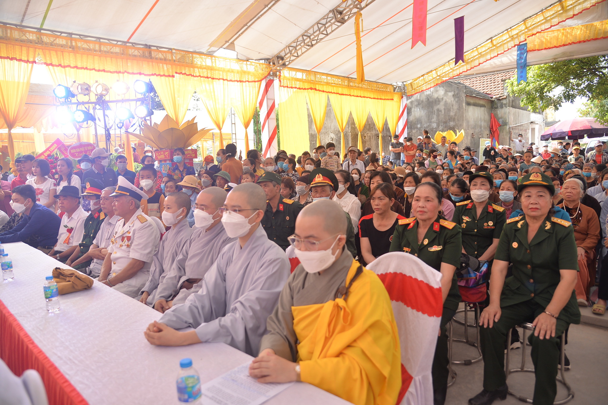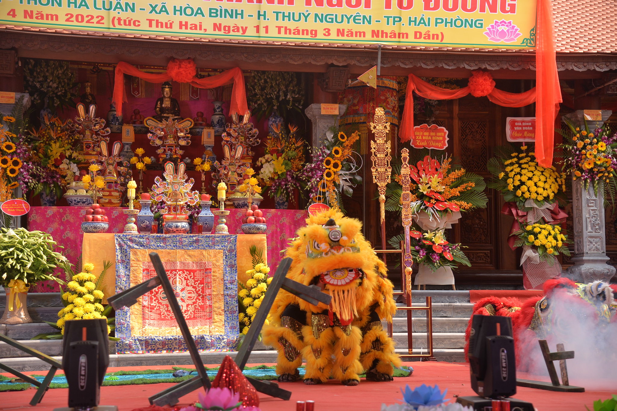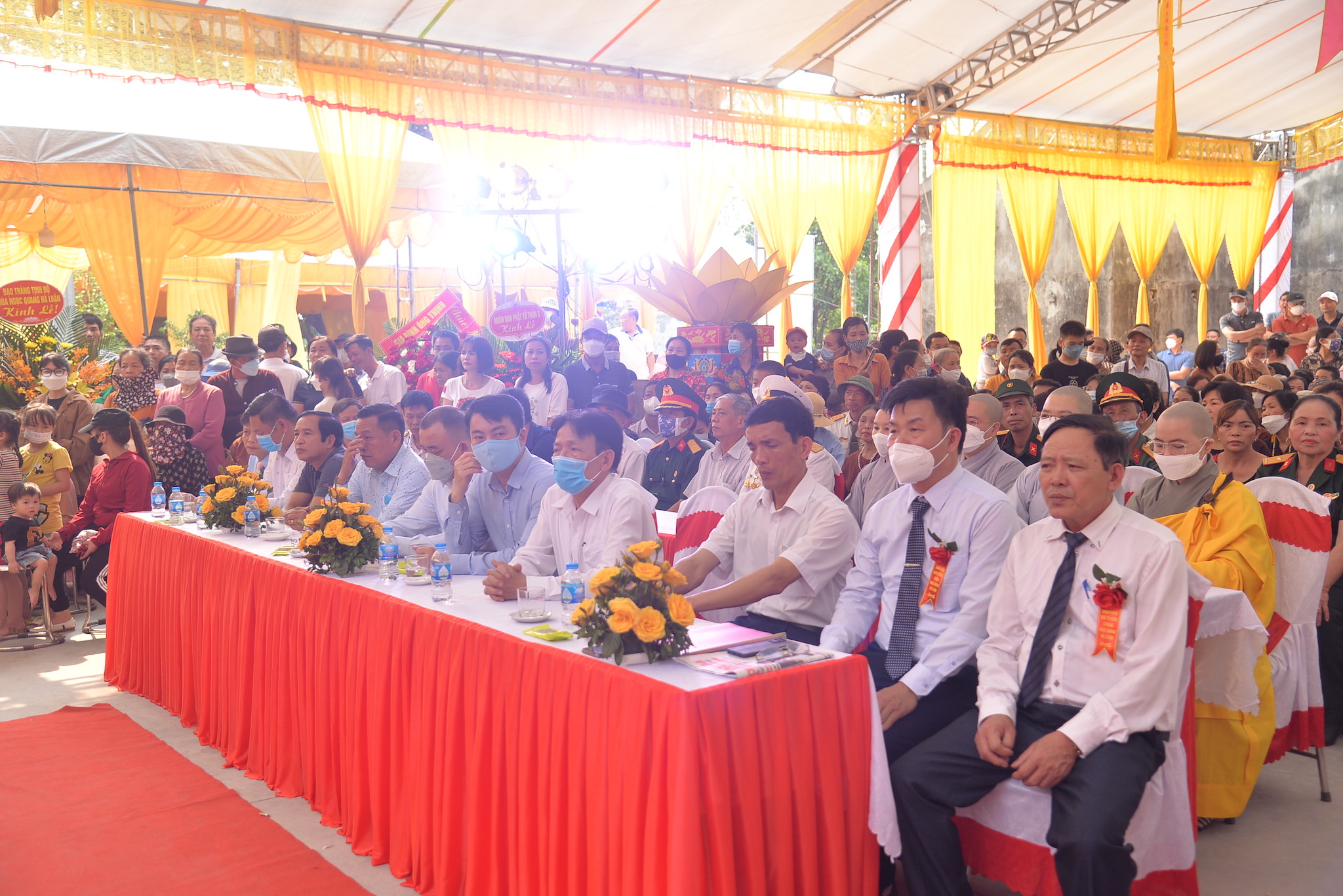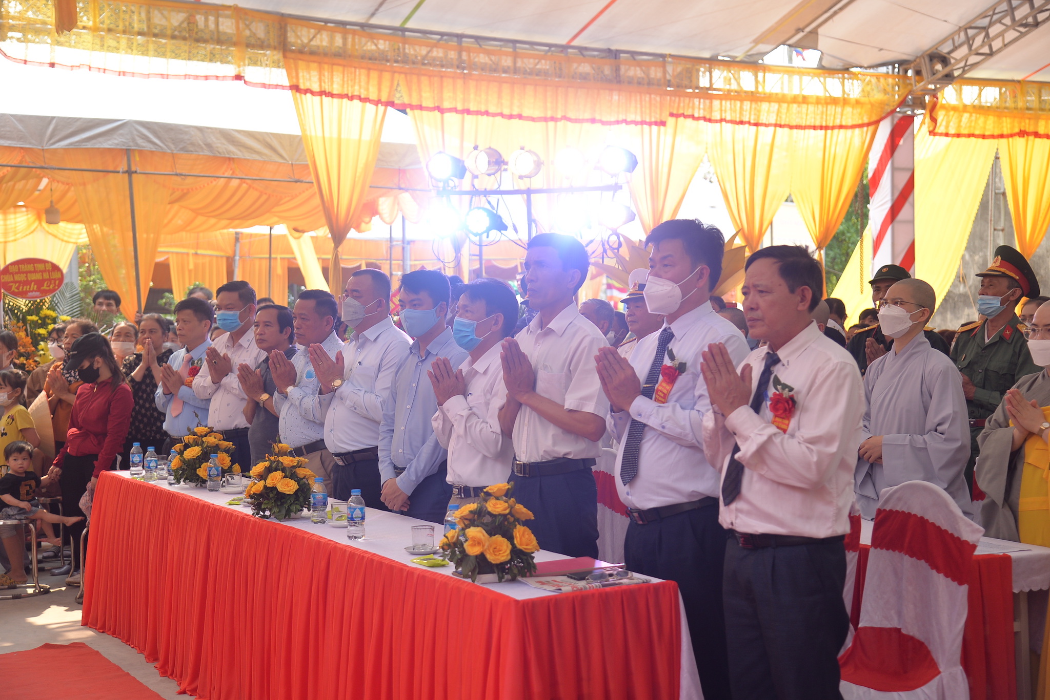Về phía khách mời chính quyền có ông: Đỗ Văn Thi – Phó trưởng phòng Nội vụ huyện Thủy Nguyên; ông: Vương Văn Năm – Bí thư Đảng uỷ, chủ tịch HĐND xã Hòa Bình; ông: Nguyễn Duy Tuyên: Phó Bí thư, Chủ tịch UBND xã; ông: Trần Văn Toàn – Đảng ủy viên, Phó Chủ tịch UBND xã Hòa Bình, trưởng Ban quản lý Di tích; ông: Trần Văn Hân – Trưởng Làng văn hóa thôn Hà Luận, cùng đại diện các cở, ban ngành đoàn thể, các nhà hảo tâm, các mạnh thường quân, các Phật tử gần xa và nhân dân địa phương.