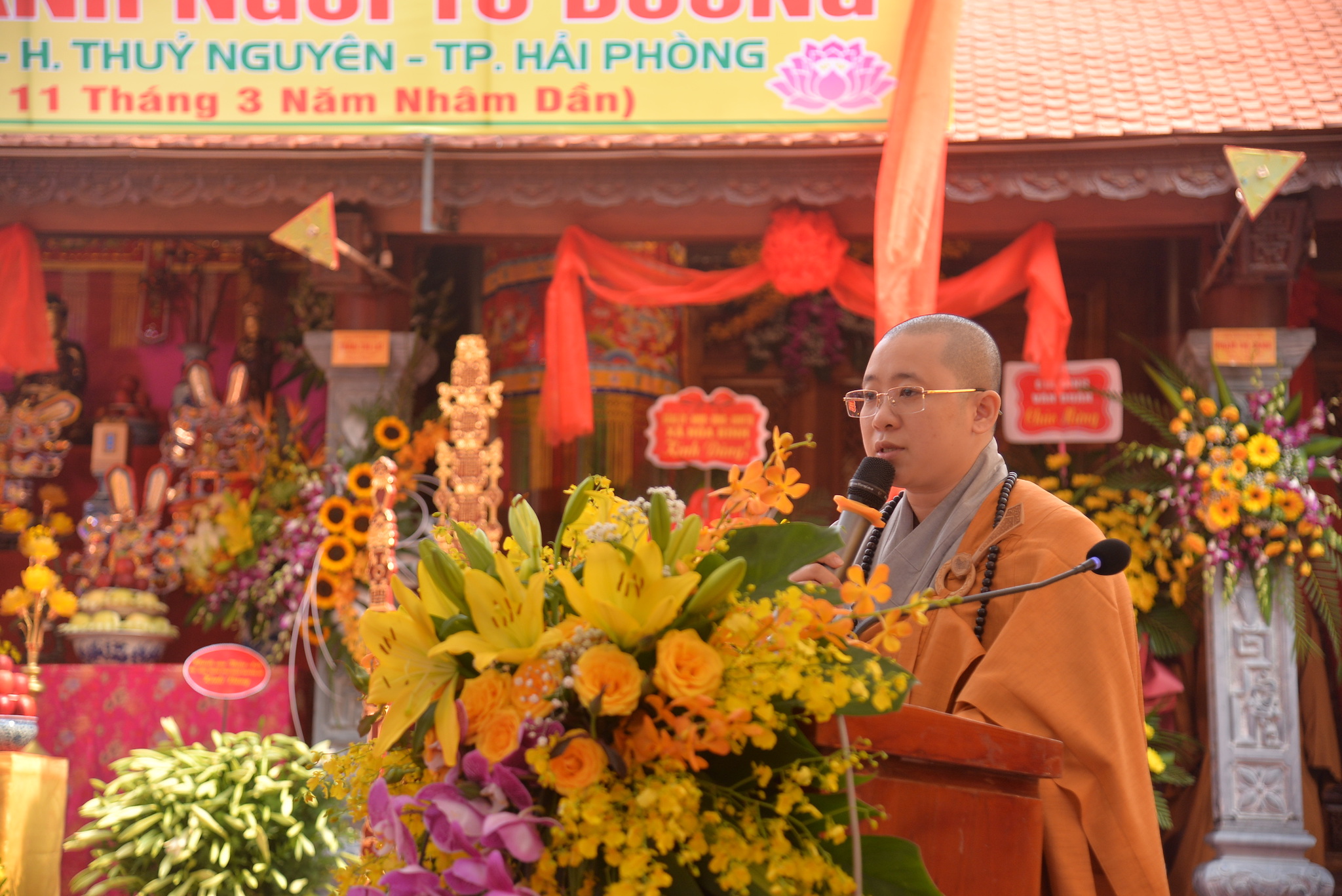 Quang lâm chứng minh và tham dự buổi lễ có Thượng tọa Thích Tục Lương – Uỷ viên BTS GHPGVN thành phố Hải Phòng, Phó trưởng BTS GHPGVN quận Lê Chân; Thượng tọa Thích Giác Sơn – Phó Ban trị sự GHPGVN quận Lê Chân; Thượng tọa Thích Tục Thành – Uỷ viên thường trực BTS GHPGVN thành phố Hải Phòng, trưởng Ban trị sự GHPGVN huyện Thủy Nguyên; Sư cô: Thích Nhật Minh – Trụ trì chùa Ngọc Quang, trưởng BTC đại lễ, cùng đông đảo chư tôn đức Tăng Ni trụ trì các chùa trên địa bàn thành phố Hải Phòng và một số tỉnh thành lân cận.