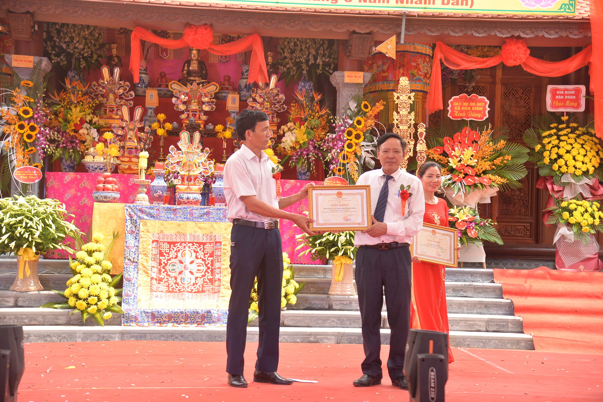 Lãnh đạo chính quyền tặng hoa chúc mừng.