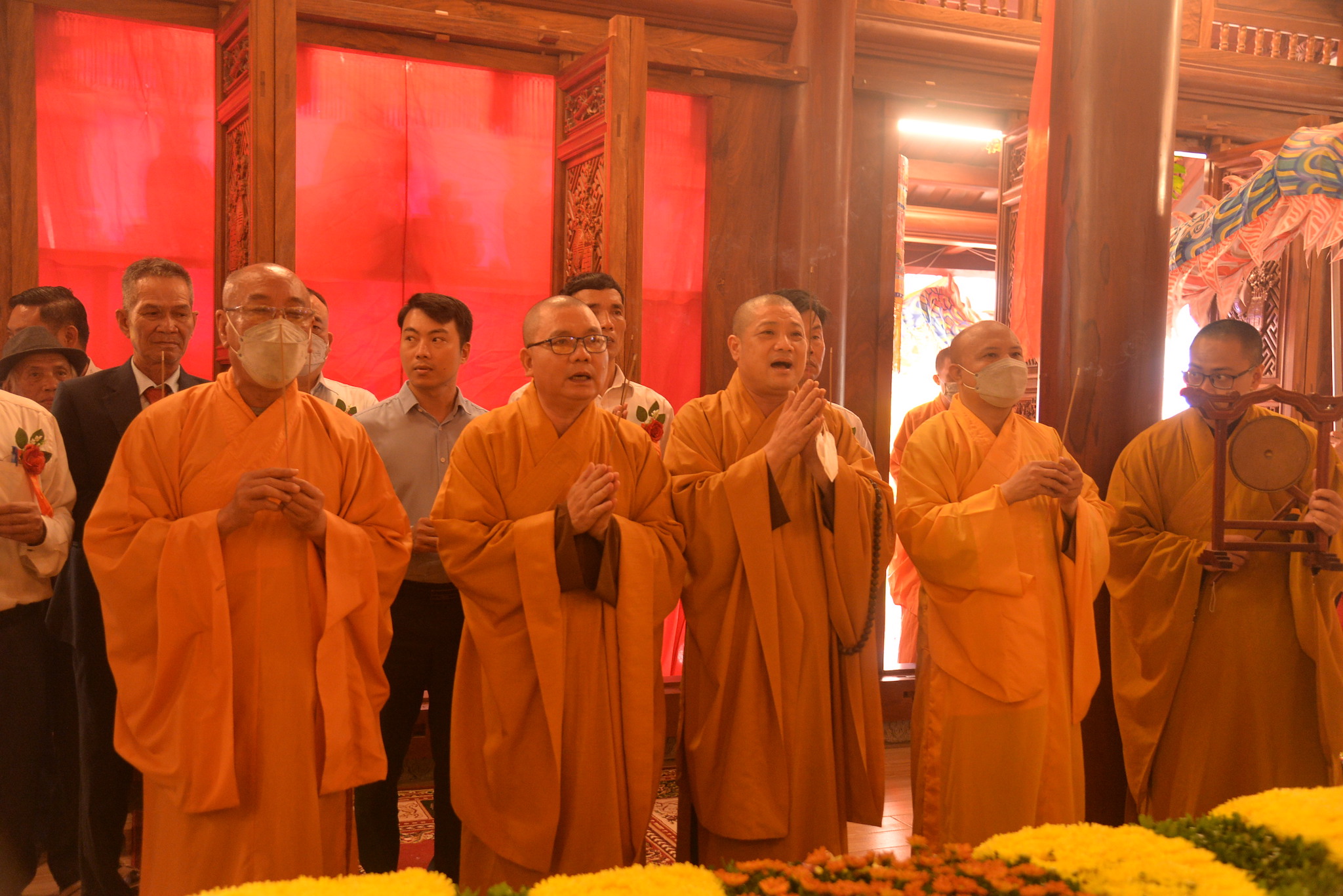 Chư tôn đức dâng hương chú nguyện tại Tổ đường chùa Ngọc Quang