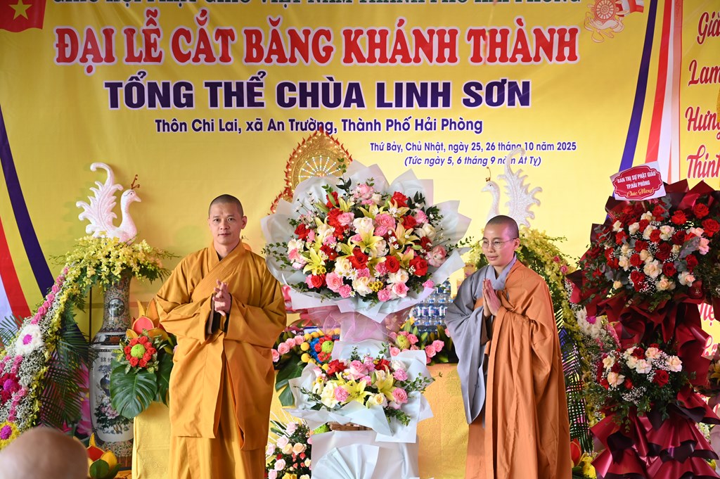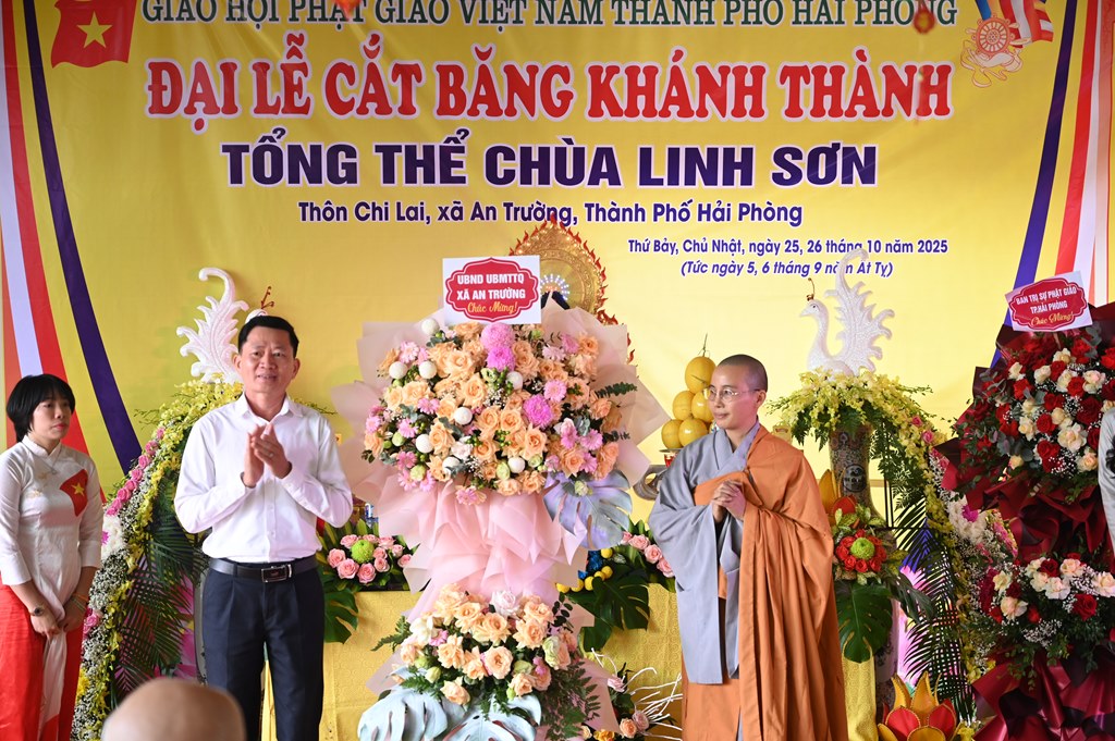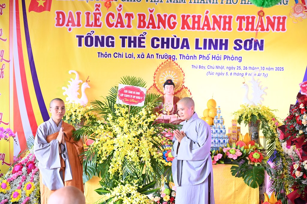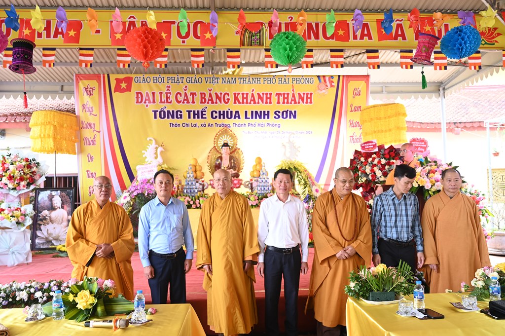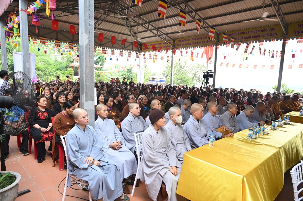 Quang lâm chứng minh, tham dự buổi lễ có HT. Thích Quảng Tùng, Phó Chủ tịch Hội đồng Trị sự GHPGVN, Trưởng ban Ban trị sự GHPGVN TP. Hải Phòng; Thượng tọa Thích Thanh Vân, Ủy viên HĐTS GHPGVN, phó trưởng ban thường trực BTS GHPGVN thành phố; TT. Thích Tục Lương – Ủy viên thường trực BTS GHPGVN thành phố; TT. Thích Bản Điền – Phó chánh thư ký, phó chánh văn phòng BTS GHPGVN thành phố, phụ trách Phật giáo xã An Trường; Đại đức Thích Thanh Trường, ủy viên thường trực BTS, phó trưởng Ban Hướng dẫn Phật tử GHPGVN thành phố; Sư cô Thích Diệu Thành, Trụ trì chùa Linh Sơn, trưởng BTC đại lễ, chư tôn đức ủy viên Ban Trị sự GHPGVN thành phố, cùng chư Tăng Ni trong và ngoài thành phố.