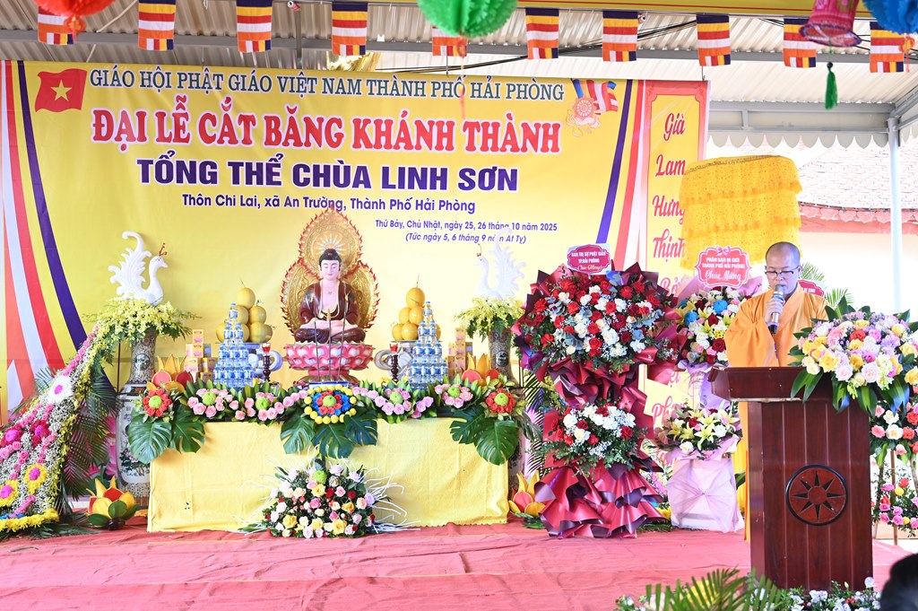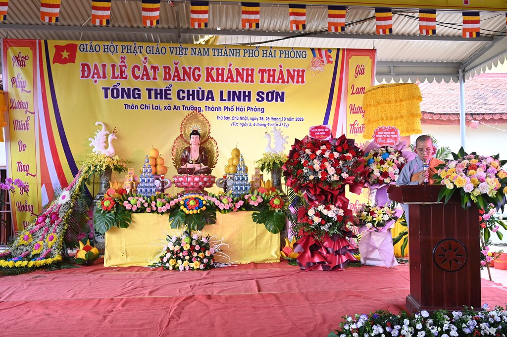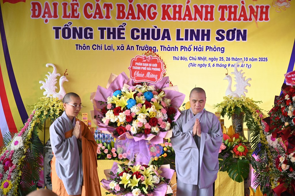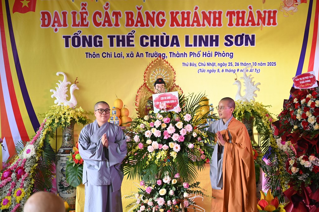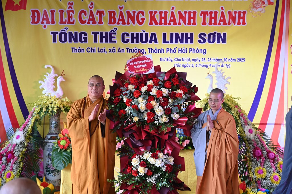 Quang lâm chứng minh, tham dự buổi lễ có HT. Thích Quảng Tùng, Phó Chủ tịch Hội đồng Trị sự GHPGVN, Trưởng ban Ban trị sự GHPGVN TP. Hải Phòng; Thượng tọa Thích Thanh Vân, Ủy viên HĐTS GHPGVN, phó trưởng ban thường trực BTS GHPGVN thành phố; TT. Thích Tục Lương – Ủy viên thường trực BTS GHPGVN thành phố; TT. Thích Bản Điền – Phó chánh thư ký, phó chánh văn phòng BTS GHPGVN thành phố, phụ trách Phật giáo xã An Trường; Đại đức Thích Thanh Trường, ủy viên thường trực BTS, phó trưởng Ban Hướng dẫn Phật tử GHPGVN thành phố; Sư cô Thích Diệu Thành, Trụ trì chùa Linh Sơn, trưởng BTC đại lễ, chư tôn đức ủy viên Ban Trị sự GHPGVN thành phố, cùng chư Tăng Ni trong và ngoài thành phố.