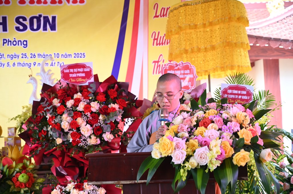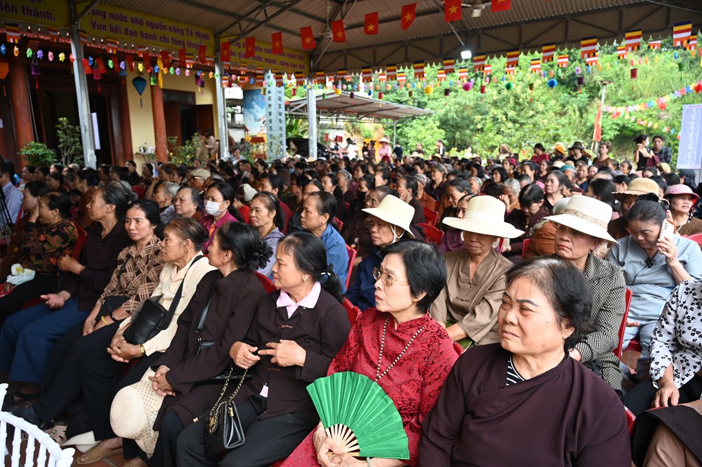 Ban đạo từ, Hòa thượng Thích Quảng Tùng tán thán công đức của Sư cô trụ trì, sự hỗ trợ của các cấp chính quyền, các nhà hảo tâm, mạnh thường quân để từ một ngôi chùa nhỏ nằm chênh vênh trên lưng chừng núi Voi đã được khang trang, tố hảo như ngày hôm nay. Hòa thượng cũng nhấn mạnh về vai trò của ngôi chùa đối với đời sống tâm linh của người dân Việt, cũng như công đức của việc xây chùa, tạo tượng, đúc chuông. Chùa không chỉ là nơi sinh hoạt tâm linh, tín ngưỡng, mà còn là nơi gửi gắm niềm tin, ước vọng của nhân dân trong cuộc sống. Hòa thượng mong trong thời gian tới, các cấp chính quyền tiếp tục tạo mọi điều kiện giúp đỡ Sư cô trụ trì trong công cuộc hoằng dương chính pháp, làm lợi lạc quần sinh và mong các nhà hảo tâm, các mạnh thường quân, các Phật tử tiếp tục phát tâm công đức để Sư cô trụ trì có kinh phí trang trải các khoản nợ nần, hoàn thành tâm nguyện phụng sự của mình.