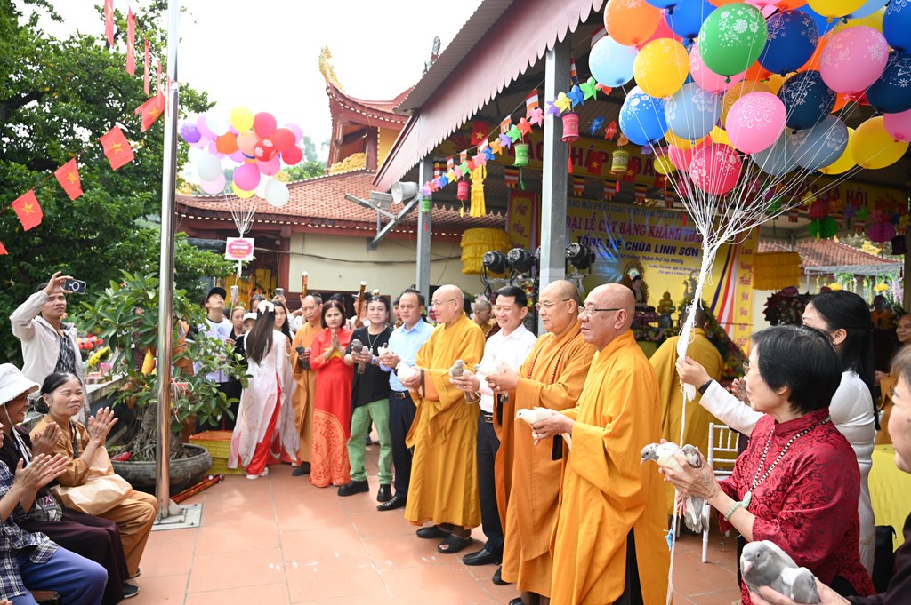 Trước khi kết thúc buổi lễ, chư tôn đức Tăng Ni, đại diện chính quyền địa phương đã cử hành nghi lễ cắt băng khánh thành tổng thể chùa Linh Sơn, niêm hương bạch Phật tại chánh điện, thả chim bồ câu phóng sinh, cầu nguyện thế giới hòa bình, chúng sinh an lạc.