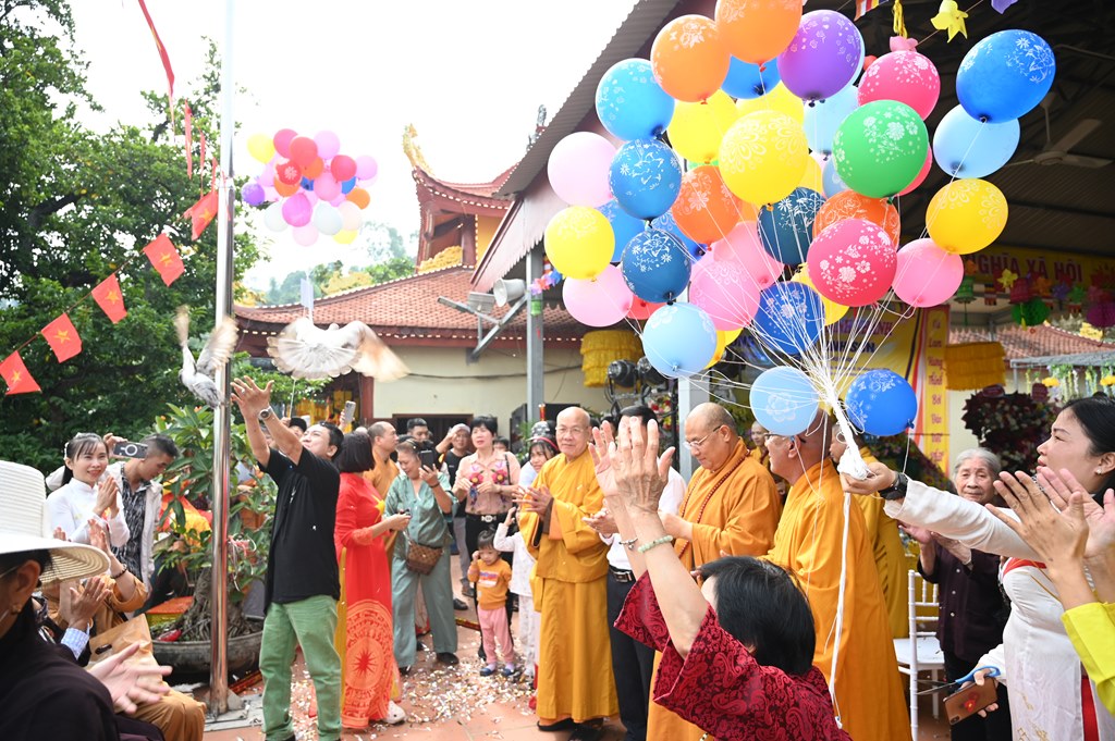 Chư tôn đức và đại biểu thả chim bồ câu cầu nguyện hòa bình