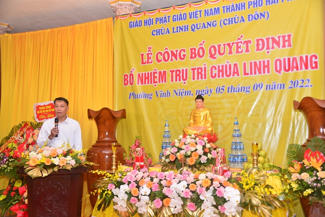 TT. Thích Tục Minh – Chánh văn phòng BTS GHPGVN thành phố Hải Phòng công bố Quyết định bổ nhiệm trụ trì chùa Đôn ( Linh Quang tự) cho TT. Thích Quảng Truyền
