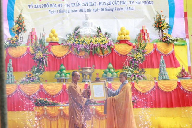 Quang lâm và chứng minh cho buổi lễ có Đại đức Thích Tục Khang – Phó trưởng Ban trị sự GHPGVN thành phố Hải Phòng, trưởng Ban trị sự GHPGVN huyện Cát Hải, ĐĐ. Thích Bản Điền – Trưởng ban truyền thông GHPGVN Tp. Hải Phòng, phó Ban trị sự GHPGVN huyện Cát Hải cùng đông đảo chư tôn thiền đức Tăng Ni một số chùa, tự viện trên địa bàn thành phố Hải Phòng và chư tôn đức Tăng Ni một số tỉnh thành lân cận.
