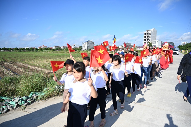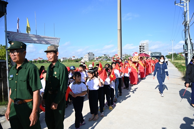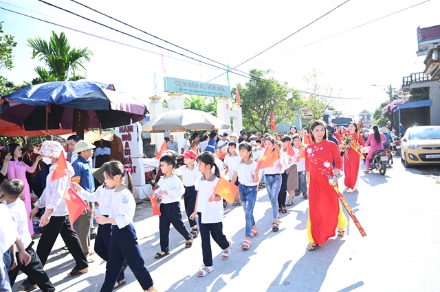 Đại diện chính quyền tặng hoa chúc mừng