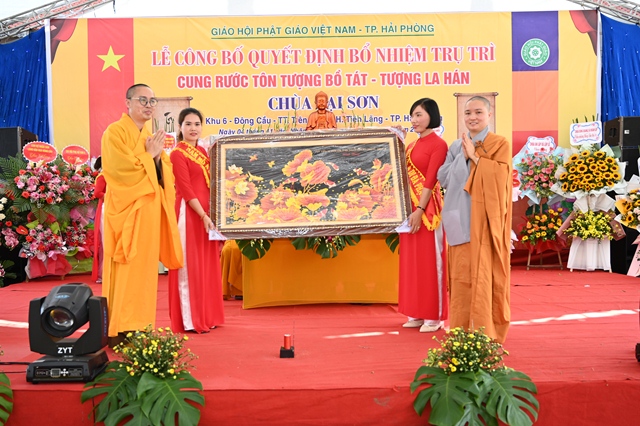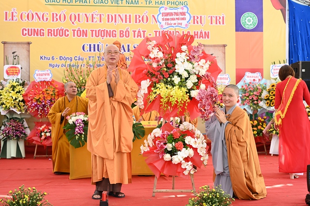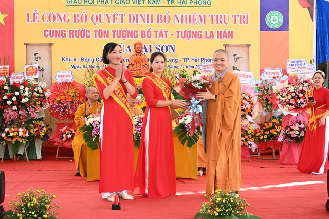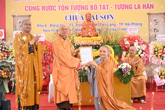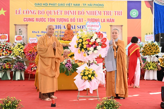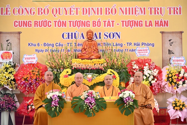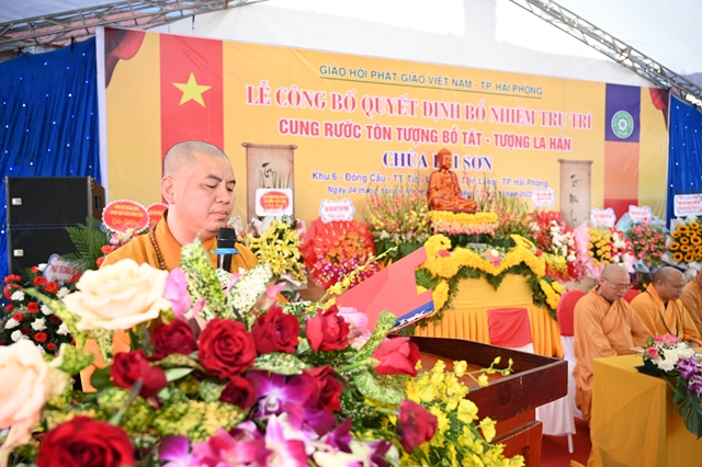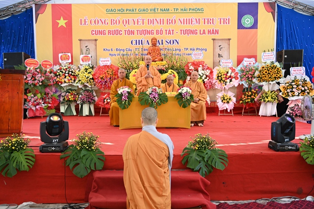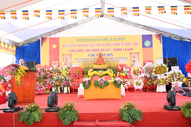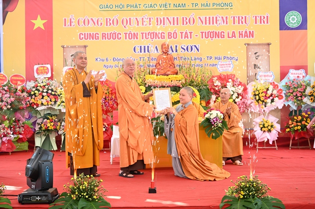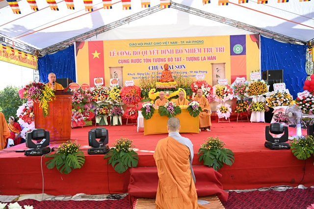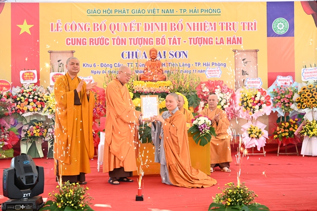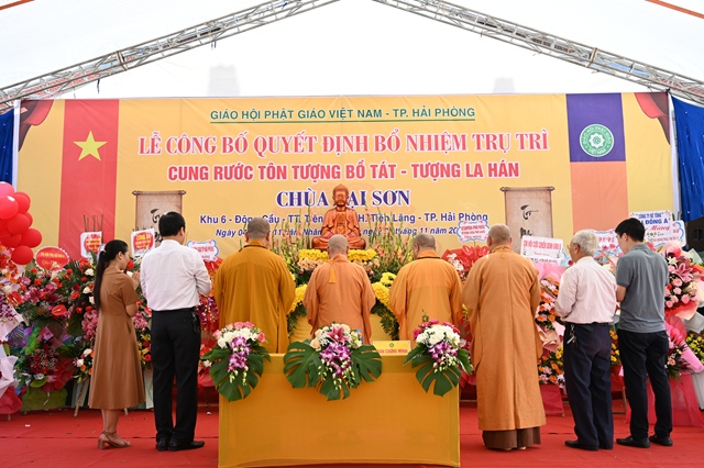 Tại buổi lễ, thay mặt cho thường trực Ban trị sự GHPGVN thành phố Hải Phòng,Đại đức. Thích Tục Phát – Phó trưởng BTS GHPGVN huyện Tiên Lãng đã lên công bố Quyết định bổ nhiệm trụ trì chùa Lại Sơn cho Sư cô Thích Diệu Ngọc. Tiếp đó, Hòa thượng Thích Thanh Giác – Phó trưởng Ban thường trực BTS GHPGVN thành phố đã lên trao quyết định bổ nhiệm trụ trì trước sự chứng minh của đông đảo chư tôn đức Tăng Ni và sự chứng kiến của các cấp chính quyền, đông đảo quý Phật tử.