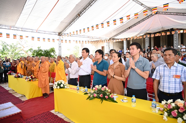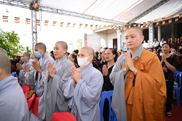 Trước khi kết thúc buổi lễ, Chư tôn đức Tăng Ni, các Phật tử và nhân dân địa phương đã làm lễ dâng hương, bạch Phật, cầu nguyện thế giới hòa bình, chúng sinh an lạc, Phật pháp được xương minh.