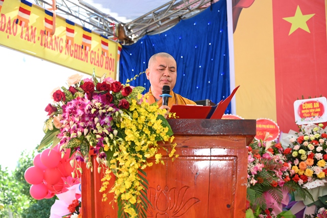Dịp này, Hoà thượng Thích Thanh Giác đã ban đạo từ nói lên vai trò, trách nhiệm, của một vị Sư trụ trì. Theo đó, vị trụ trì là chiếc cầu nối giữa đạo Phật và các tín đồ, Phật tử. Đó chính là việc làm vô cùng quan trọng và ý nghĩa của vị trụ trì. Hòa thượng cũng căn dặn Sư cô trụ trì, sau khi chính thức được bổ nhiệm trụ trì, với trọng trách của mình, Sư cô tân trụ trì sẽ quản lý, điều hành các hoạt động của ngôi chùa theo đúng Hiến chương của Giáo hội, pháp luật về tín ngưỡng, tôn giáo của Nhà nước; phối hợp tốt với các cấp chính quyền địa phương thực hiện tốt vấn đề an sinh xã hội, đưa huyện nhà ngày càng phát triển. lớn mạnh.