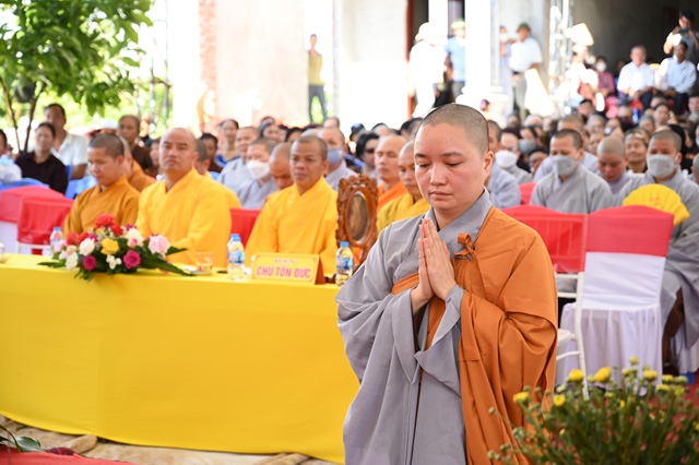 Sư cô Thích Diệu Ngọc lắng nghe lời đạo từ của Hòa thượng chứng minh