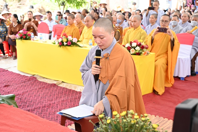 Sư cô tân trụ trì dâng lời phát nguyện sau khi được bổ nhiệm trụ trì chùa Lại Sơn