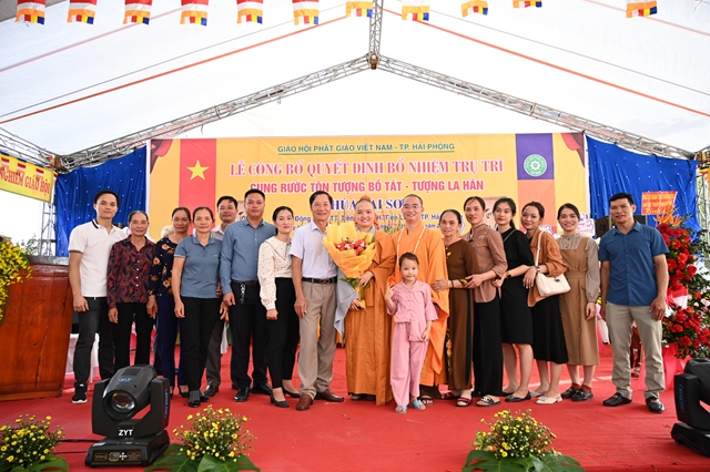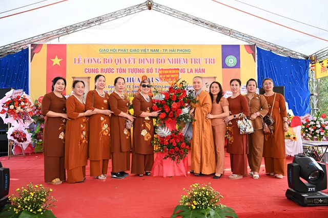 Gia đình Sư cô tân trụ trì tặng hoa chúc mừng