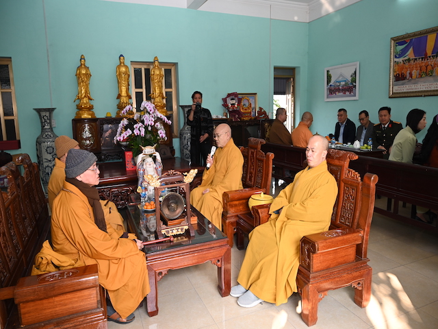 Đại đức Thích Bản Đức đón nghe Quyết định bổ nhiệm trụ trì của thường trực Ban trị sự GHPGVN thành phố Hải Phòng