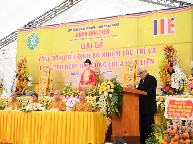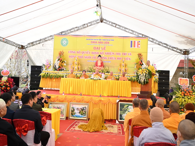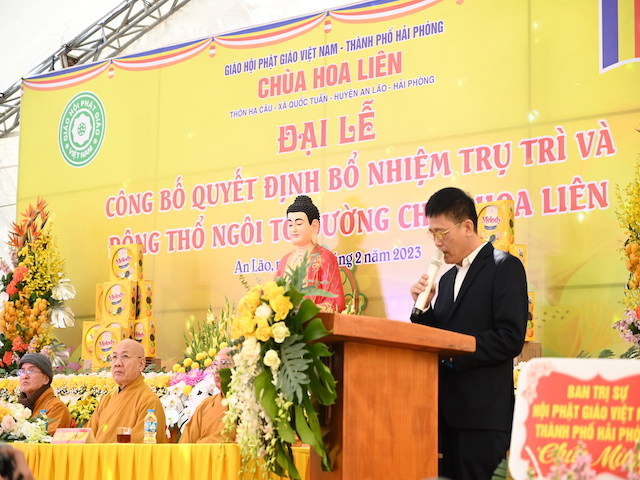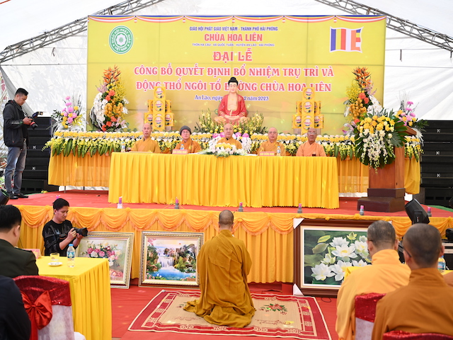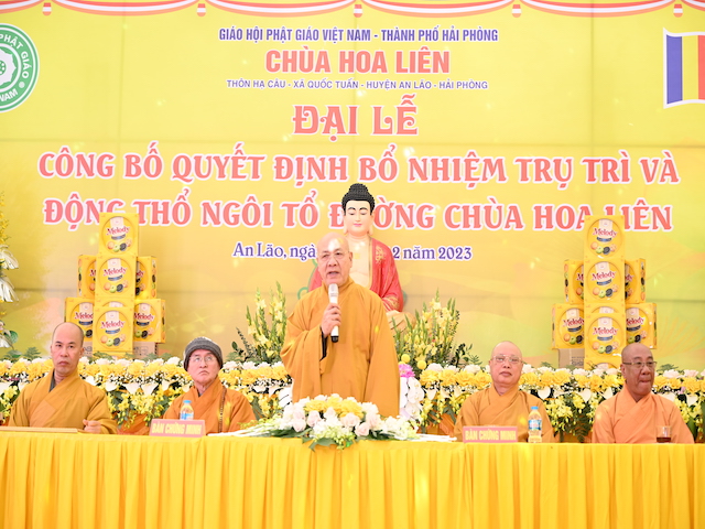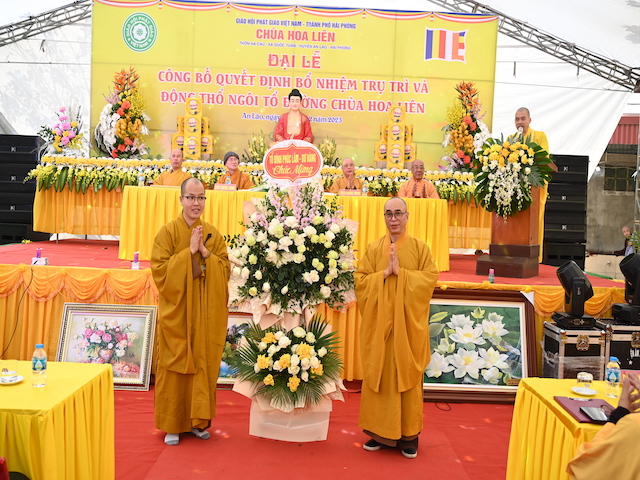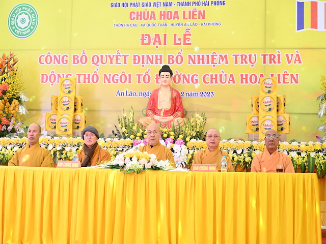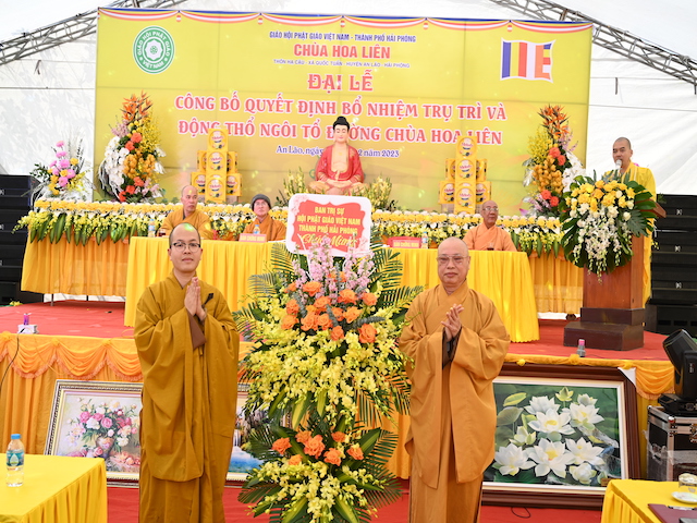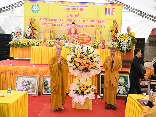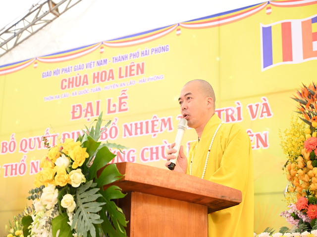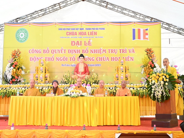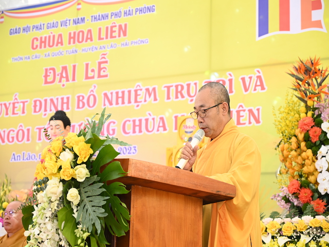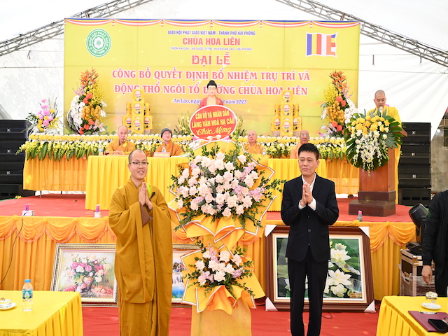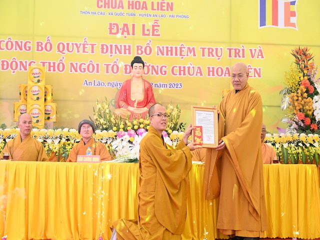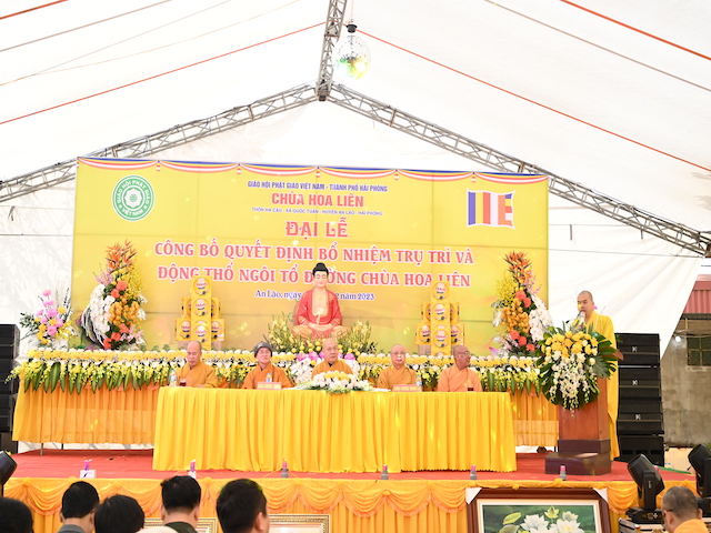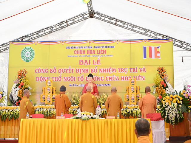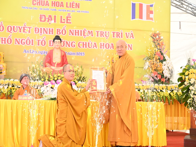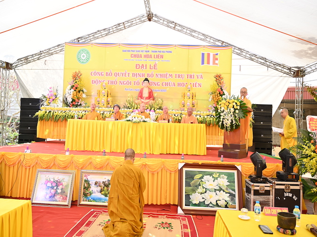 Tại buổi lễ, thay mặt cho thường trực Ban trị sự GHPGVN thành phố Hải Phòng, TT. Thích Bản Điền  – Phó Chánh văn phòng BTS GHPGVN thành phố đã lên công bố Quyết định số 035/QĐ – BTS ngày 26 tháng 10 năm 2022, về việc bổ nhiệm trụ trì chùa Hoa Liên cho Đại đức Thích Bản Đức. Tiếp đó, Hoà thượng Thích Quảng Tùng – Trưởng Ban trị sự GHPGVN thành phố đã lên trao Quyết định bổ nhiệm trụ trì cho Đại đức Thích Bản Đức, trước sự chứng minh của chư tôn đức Tăng Ni, sự chứng kiến của các cấp chính quyền và quý Phật tử gần xa.