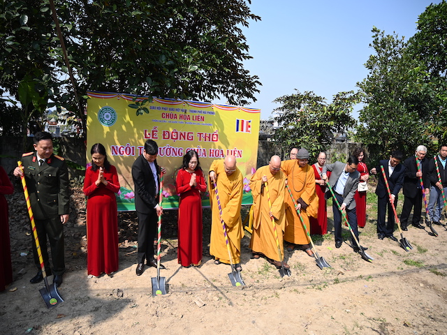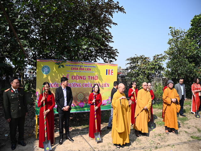 Trước khi kết thúc buổi lễ, Chư tôn đức Tăng Ni, chính quyền, Phật tử và nhân dân địa phương đã làm lễ dâng hương, bạch Phật, cầu nguyến Quốc thái dân an, cử hành nghi lễ chú nguyện, sái tịnh và động thổ xây dựng ngôi Tổ đường chùa Hoa Liên trong không khí hoan hỷ, ấm tình đạo vị.
