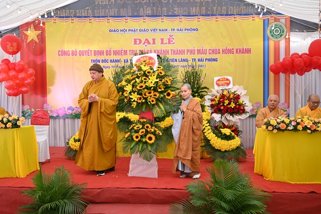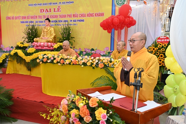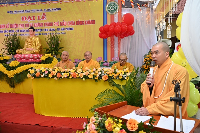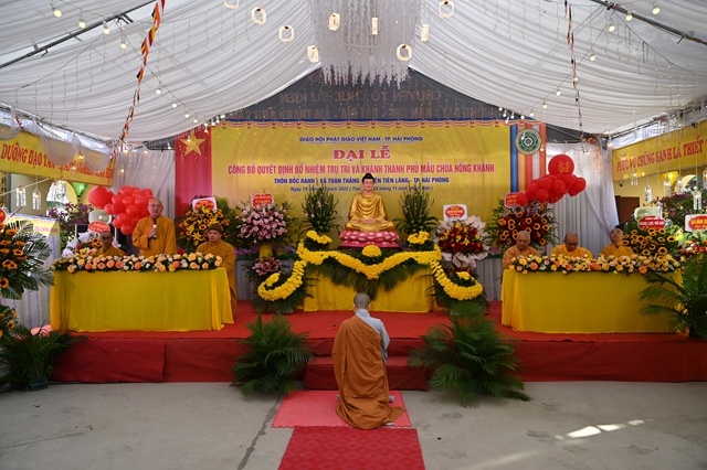 Tại buổi lễ, thay mặt cho thường trực BTS GHPGVN thành phố Hải Phòng,Thượng tọa Thích Tục Minh – Chánh văn phòng BTS GHPGVN huyện Tiên Lãng đã lên công bố Quyết định bổ nhiệm trụ trì chùa Hồng Khánh cho Sư cô Thích Diệu Thảo. Tiếp đó, Hoà thượng Thích Quảng Tùng  – Trưởng BTS GHPGVN thành phố đã lên trao quyết định bổ nhiệm trụ trì trước sự chứng minh của đông đảo chư tôn đức Tăng Ni và sự chứng kiến của các cấp chính quyền và đông đảo quý Phật tử.