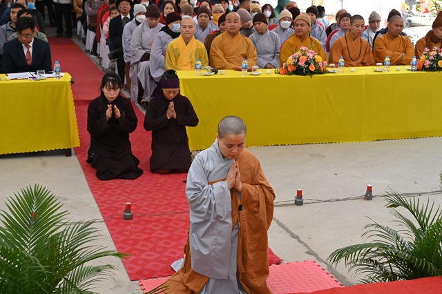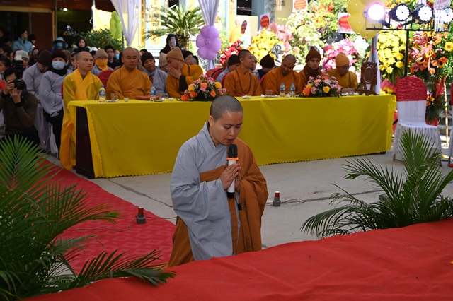 Sư cô Thích Diệu Thảo dâng lời phát nguyện sau khi chính thức được bổ nhiệm trụ trì chùa Hồng Khánh.
