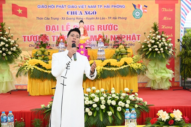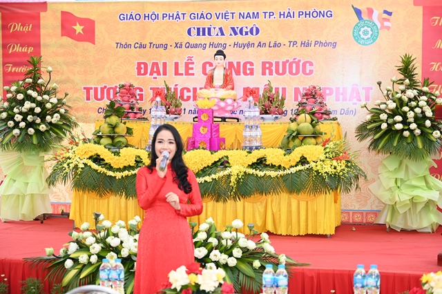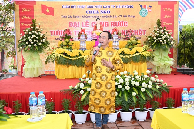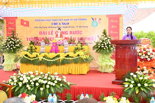 Phát biểu tại buổi lễ, bà: Nguyễn Thị Lan Anh – Uỷ viên ban thường vụ Đảng ủy, phó Chủ tịch UBND xã Quang Hưng đã chúc mừng Sư cô trưởng Ban tổ chức đã hoàn thành tâm nguyện cung rước tôn tượng Bổn sư Thích Ca Mâu Ni Phật về an vị tại khuôn viên chùa, để bà con Phật tử, nhân dân địa phương tới chiêm bái, lễ lạy vào những ngày rằm, mùng 1, cũng như những ngày lễ trọng đại của Phật giáo. Bà mong rằng, với sức trẻ cùng với sự năng động, sáng tạo, Sư cô bản tự sẽ tiếp tục phát huy thế mạnh của mình, thực hiện đúng chủ trương chính sách của Đảng, Nhà nước về lĩnh vực Tôn giáo, thực hiện nghiêm nội quy của Ban Tăng sự, giúp bà con Phật tử, nhân dân địa phương tu học, sinh hoạt tín ngưỡng văn hóa, tâm linh.