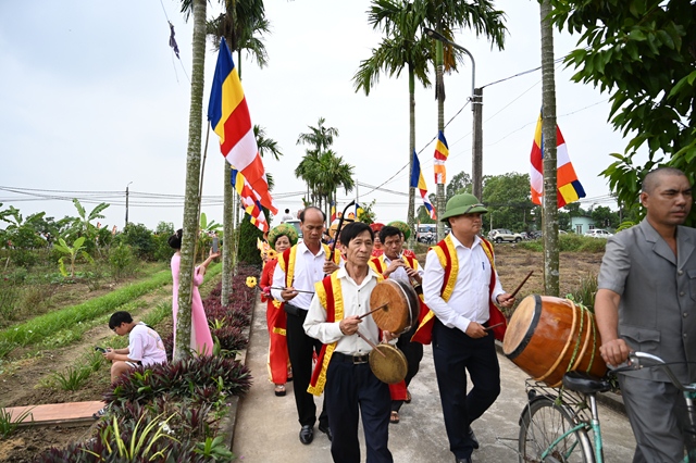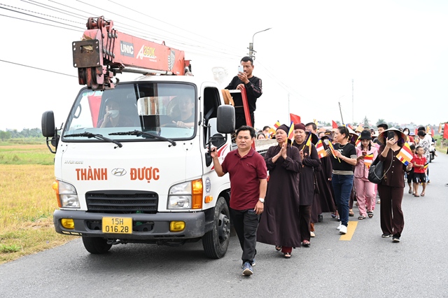 Đoàn cung rước tượng Phật từ UBND xã Quang Hưng về chùa Ngô
