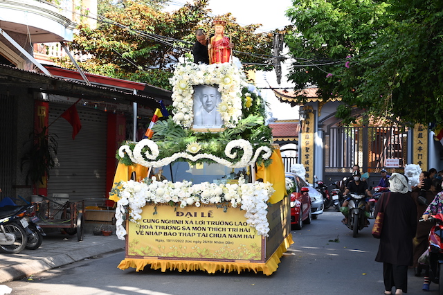 Sáng nay ngày 19/11/2022 ( nhằm ngày 26/10 năm Nhâm Dần), Ban trị sự GHPGVN thành phố Hải Phòng đã trang nghiêm thành kính tổ chức lễ cung rước Xá lợi cố Đại lão Hòa thượng Thích Trí Hải từ chùa Vĩnh Phúc ( Chùa Trữ Khê), phường Quán Trữ, quận Kiến An về chùa Nam Hải ( Trụ sở Ban trị sự GHPGVN thành phố Hải Phòng), số 197 Hai Bà Trưng, phường An Biên, quận Lê Chân, thành phố Hải Phòng để nhập Bảo tháp.