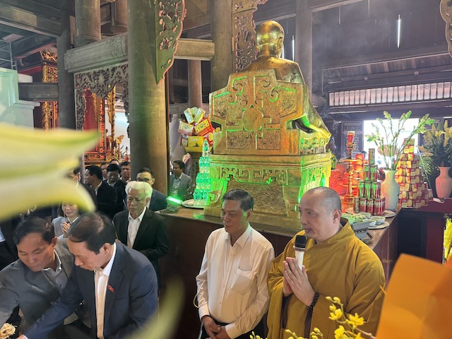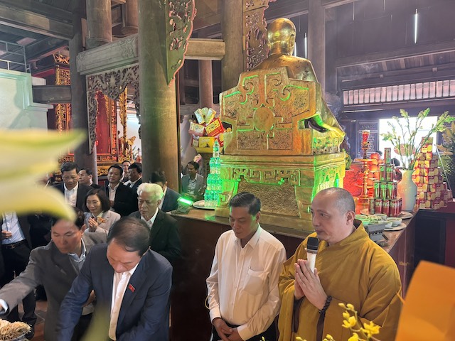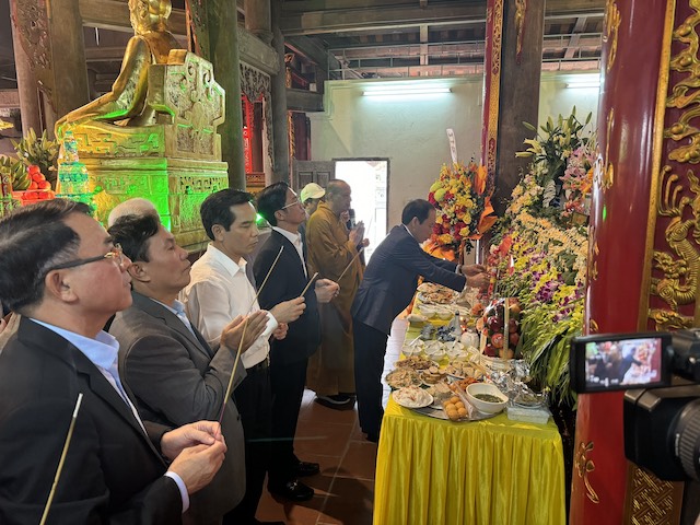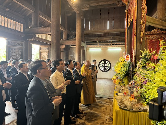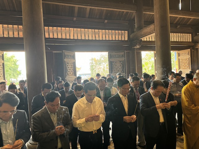 Tại đây, phái đoàn đã làm lễ dâng hương tưởng niệm cố Chủ tịch nước Tôn Đức Thắng tại Đền thờ Bác Tôn trong khuôn viên Khu lưu niệm. Đồng thời, ôn lại cuộc đời, thân thế và sự nghiệp của cố Chủ tịch nước, người chiến sĩ cộng sản kiên trung, nhà lãnh đạo mẫu mực của cách mạng Việt Nam, người đã cống hiến trọn đời cho sự nghiệp giải phóng dân tộc, thống nhất Đất nước, là tấm gương sáng, là niềm tự hào của Dân tộc nói chung và của đồng bào, Phật tử, nhân dân huyện Tiên Lãng nói riêng.