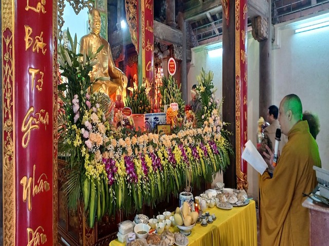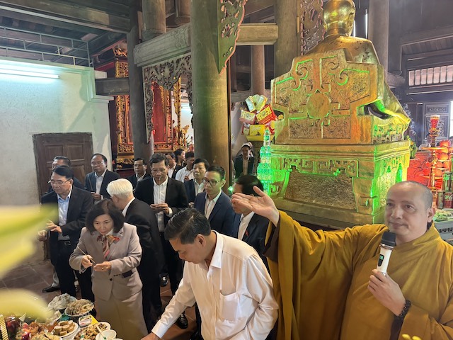 Đón tiếp phái đoàn có Thượng tọa Thích Quảng Minh – Ủy viên thường trực Ban văn hóa TƯ GHPGVN, Ủy viên thường trực Ban trị sự, trưởng Ban văn hóa GHPGVN thành phố Hải Phòng, trưởng Ban trị sự GHPGVN huyện Tiên Lãng, cùng đại diện Chư tôn đức Ban trị sự GHPGVN huyện.