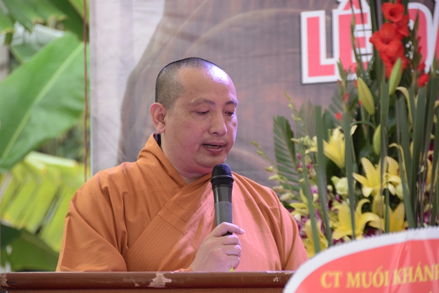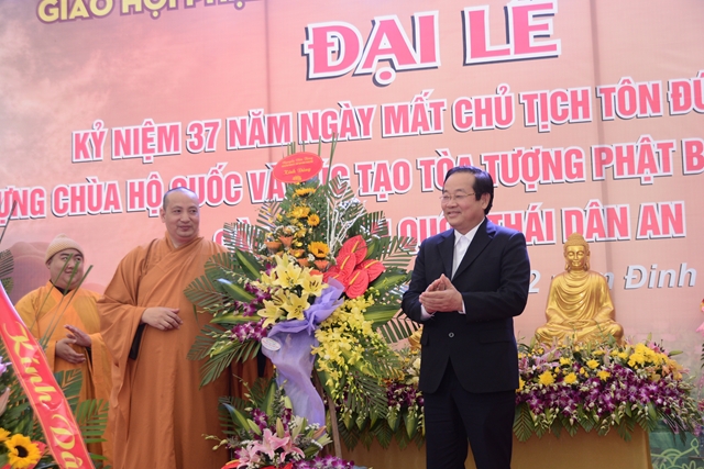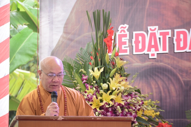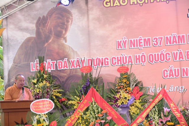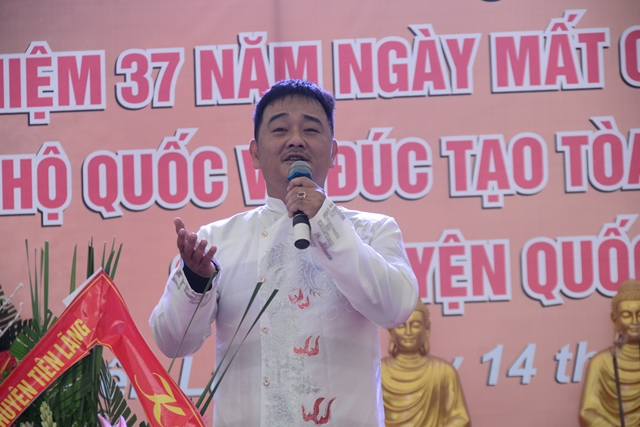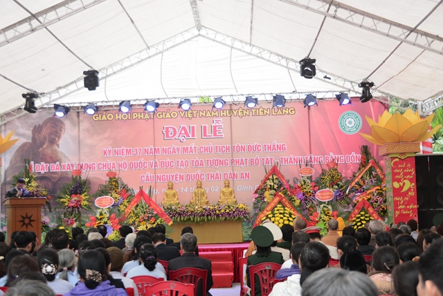 Sau nghi thức chào Quốc kỳ, đạo kỳ, niệm Phật cầu gia bị, Đại đức Thích Quảng Minh – Trưởng BTS GHPGVN huyện Tiên Lãng, trưởng BTC đại lễ đã lên phát biểu khai mạc Đại lễ kỷ niệm 37 năm ngày mất của cố chủ tịch nước Tôn Đức Thắng ( 1980 – 2017), lễ đặt đá xây dựng ngôi Đại hùng bảo điện chùa Hộ Quốc trong khuôn viên khu di tích và tôn tạo 26 pho tượng Phật bằng đồng để an trí tại chùa Hộ Quốc sau khi hoàn thành.