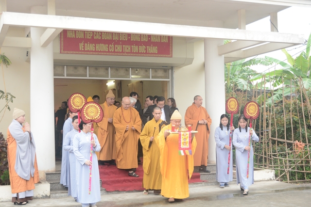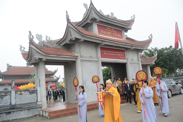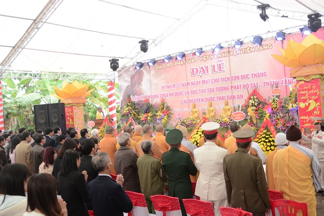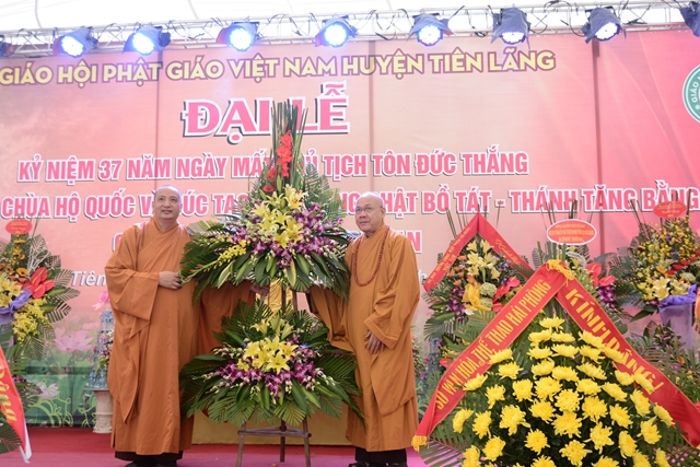 Trước khi chính thức bước vào buổi lễ, Chư tôn đức Tăng Ni và các cấp chính quyền của thành phố Hải Phòng, các cấp chính quyền huyện Tiên Lãng và xã Tiên Cường đã quang lâm về Đền thờ cố chủ tịch nước Tôn Đức Thắng nằm trong Khu lưu niệm cố chủ tịch nước Tôn Đức Thắng, thôn Đại Độ, xã Tiên Cường, huyện Tiên Lãng để làm lễ dâng hương tưởng niệm 37 năm ngày mất của cố chủ tịch nước Tôn Đức Thắng ( 1980 – 2017) trong không khí trang nghiêm, thành kính trên tinh thần Phật giáo luôn đồng hành cùng Dân tộc.