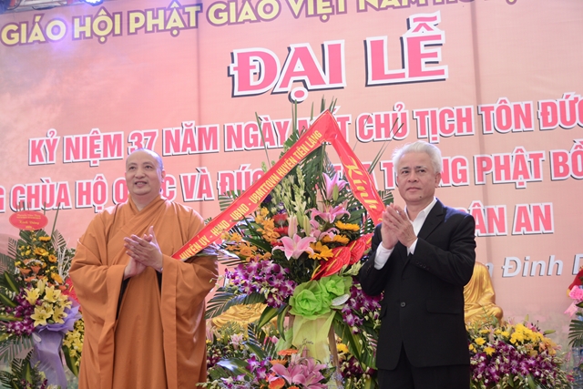 Quang lâm và chứng minh buổi lễ có Hòa thượng Thích Quảng Tùng – Phó chủ tịch HĐTS GHPGVN, trưởng Ban trị sự GHPGVN thành phố Hải Phòng; Thượng Tọa Thích Thanh Vân – Ủy viên HĐTS TƯ GHPGVN, Phó trưởng Ban thường trực BTS GHPGVN tỉnh Hải Dương; Thượng Tọa Thích Quảng Quyền – Ủy viên HĐTS TƯ GHPGVN, phó trưởng Ban thường trực BTS GHPGVN tỉnh Lạng SơnThượng Tọa Thích Thanh Dũng – Ủy viên HĐTS TƯ GHPGVN; Đại đức Thích Quảng Minh – Ủy viên thường trực BTS GHPGVN thành phố Hải Phòng, trưởng Ban trị sự GHPGVN huyện Tiên Lãng, trưởng BTC đại lễ cùng chư tôn thiền đức Tăng Ni ủy viên thường trực BTS GHPGVN thành phố Hải Phòng, chư tôn đức tăng ni GHPGVN huyện Tiên Lãng, chư tôn đức Tăng Ni trụ trì các cơ sở, tự viện đồng quang lâm về dự.