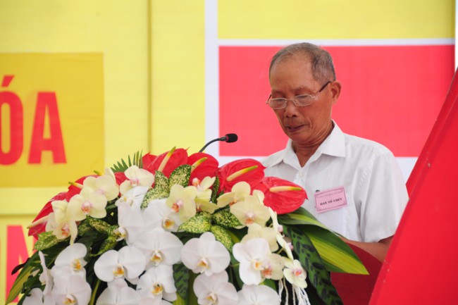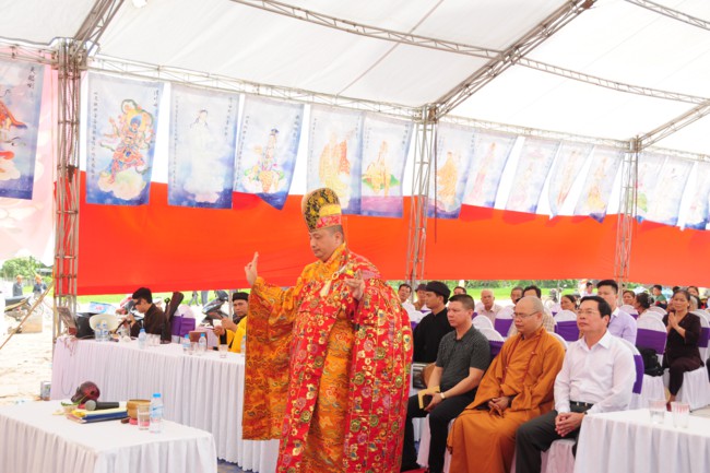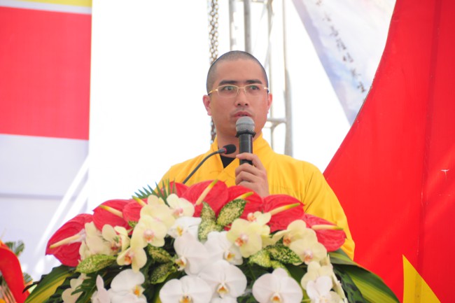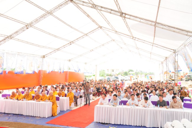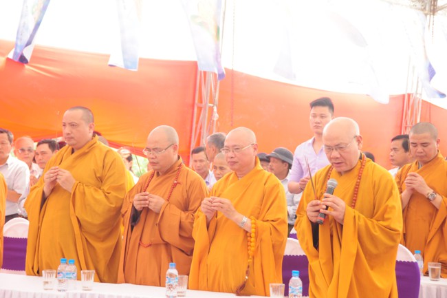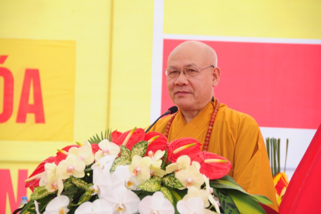 Nhân dịp này, Hòa thượng Thích Quảng Tùng đại diện Chư tôn đức chứng minh ban đạo từ nói lên công đức cúng dàng của việc làm chùa, tô tượng, đúc chuông noi theo tấm gương cúng dàng Tam Bảo của Ngài Cấp Cô Độc, tán thán công đức của các nhà hảo tâm, các mạnh thường quân, đồng bào Phật tử và nhân dân đã đóng góp tịnh tài, tịnh vật, đóng góp công sức để làm chùa. Đồng thời Hòa thượng cũng tán thán công đức lớn lao của TT. Thích Thanh Phong – Trưởng Ban kinh tế tài chính TƯ GHPGVN và Đồng chí Vũ Huy Hoàng – Bộ trưởng bộ Công thương, người con xa quê của thôn Văn Khê đã đứng lên kêu gọi các nhà hảo tâm, các mạnh thường quân đóng góp công đức xây dựng chùa.